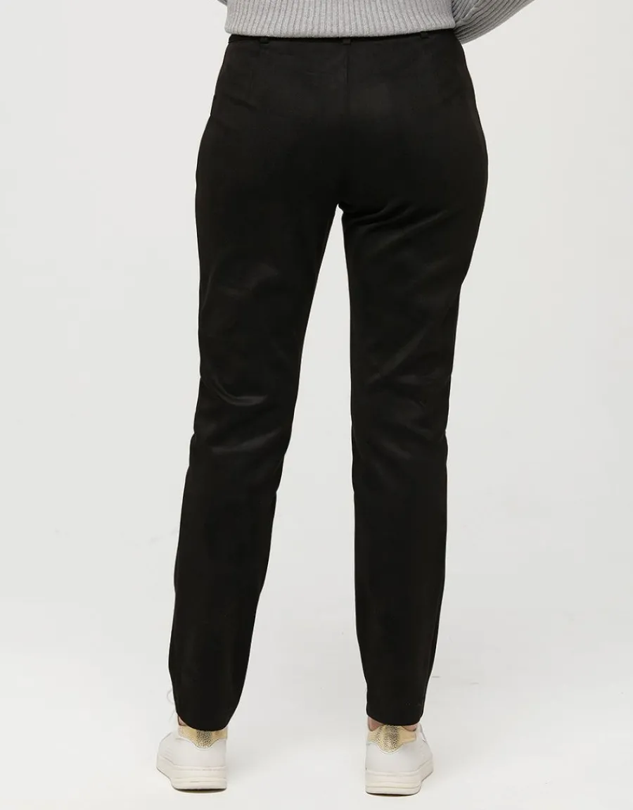 – On aime la profondeur du noir de ce pantalon en suédine et sa coupe impeccable pour des looks parfaits.