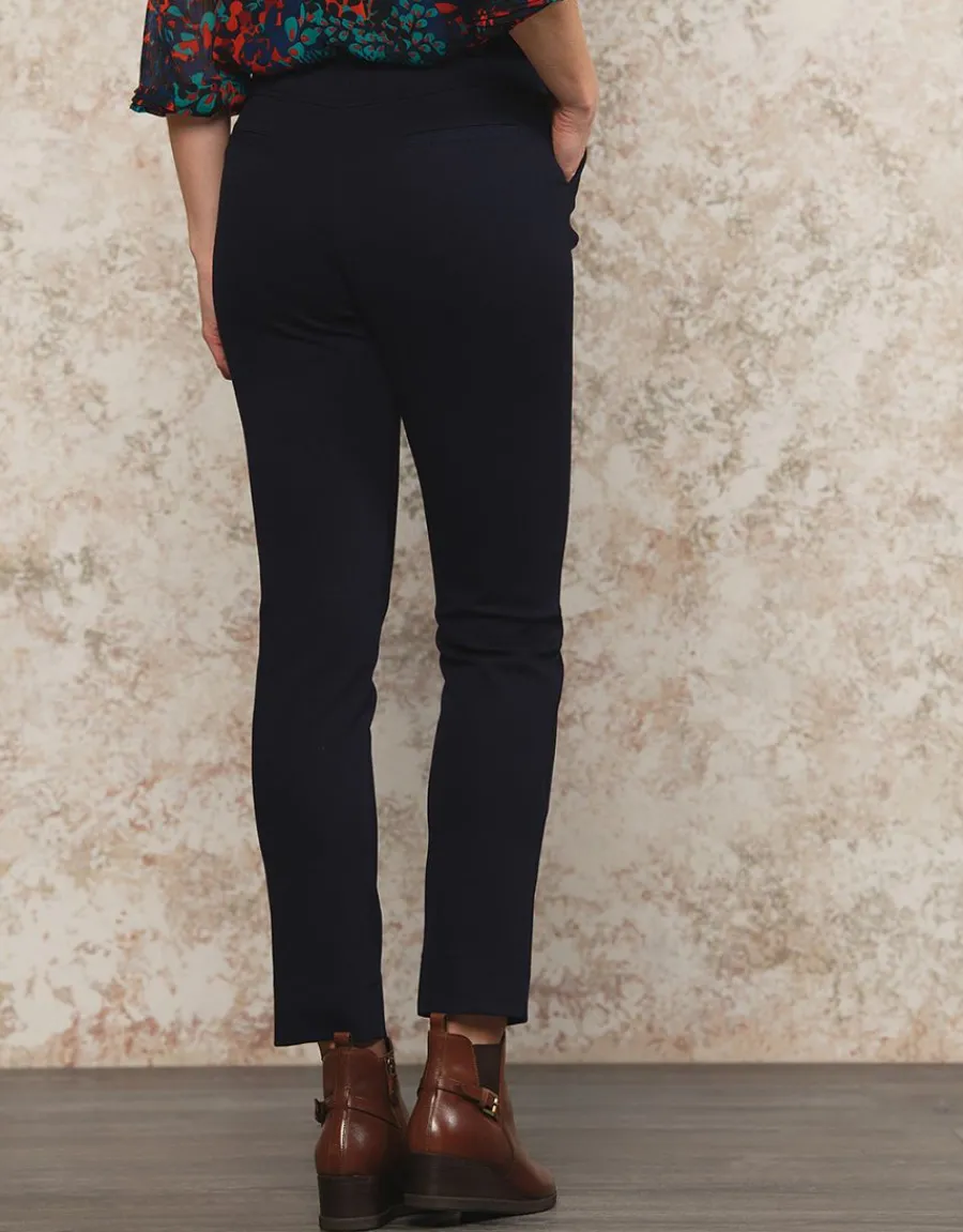 Le pantalon habillé bleu marine est un incontournable de la garde-robe féminine. Confectionné dans une matière sergé ultra stretch, il allie le confort d’un milano à l’aspect très chic d’un sergé. Sa coupe cigarette et sa longueur 7/8ème apportent une touche d’élégance et de modernité à votre tenue. La taille standard offre un maintien parfait du dos et un effet ventre plat, pour une silhouette affinée et mise en valeur. Ce pantalon de tailleur est idéal à porter avec la veste assortie E4305 pour un ensemble sophistiqué et harmonieux. Pratique, il est doté d’une ceinture dos avec élastique plat à l’intérieur, de poches italiennes devant et de faux passepoils au dos. Le chic et le confort absolu sont au rendez-vous avec ce modèle signé Christine Laure. La composition de ce pantalon est de 47% viscose, 46% polyamide et 7% élasthanne, avec une doublure poche en 100% polyester. Sa longueur est de 95 cm pour la première taille. Kristell, qui mesure 1,76m, porte du 38 et met en valeur ce pantalon avec élégance et style. Ajoutez ce pantalon habillé marine à votre garde-robe pour un look raffiné et tendance en toute occasion.