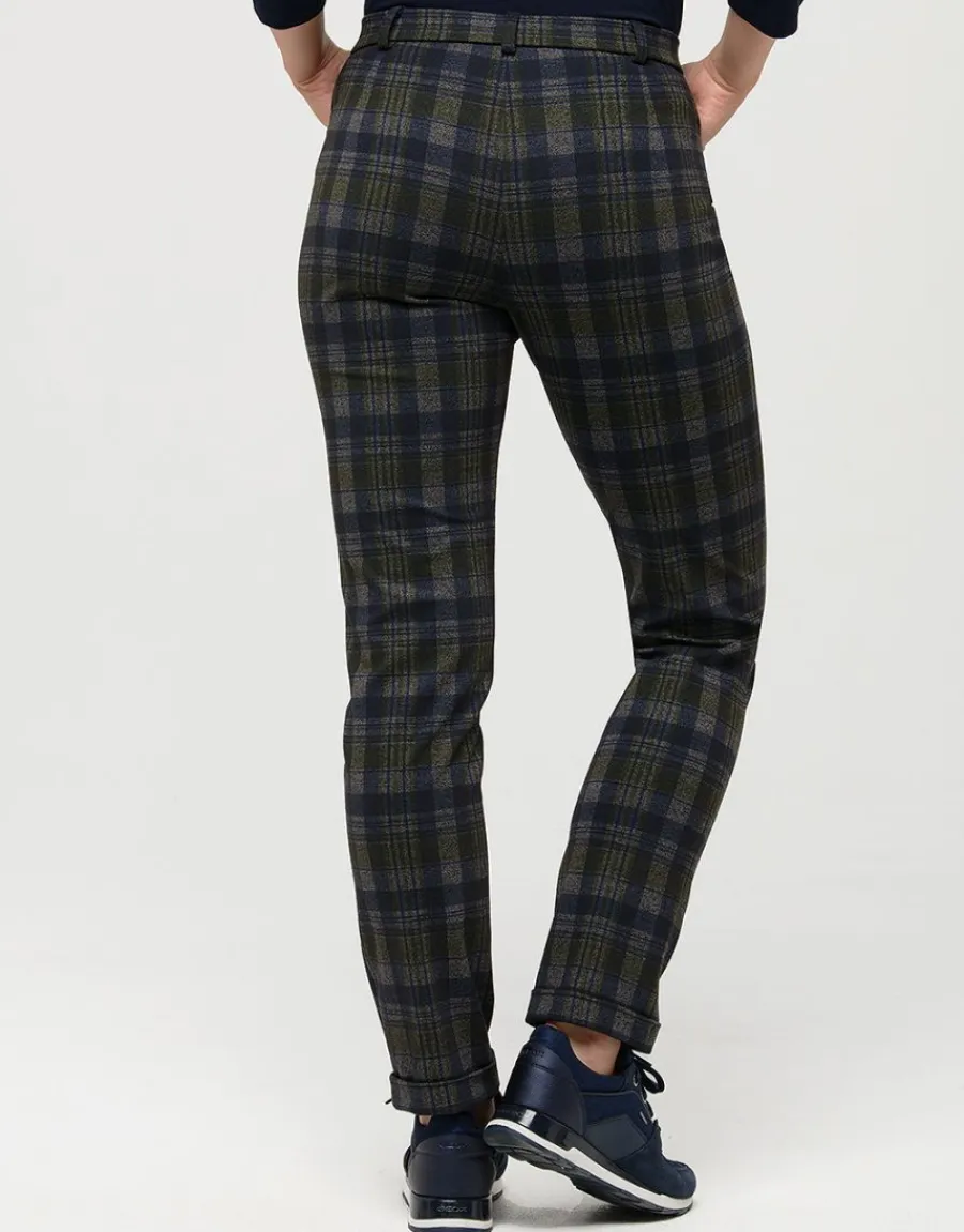 Pantalon milano vert à carreaux vert et bleu marine, coupe ajustée et longueur 7/8ème avec petit revers. Ce pantalon taille standard est confectionné dans un tissu stretch pour un confort optimal. Il est doté de 2 poches cavalières à l’avant soulignées d’un liseré pour une touche d’originalité. Le zoom mode est sur le total look avec le blouson à capuche assorti (E0641). L’écossais se décline en douceur avec les tons fondus de ce pantalon, apportant ainsi une touche nouvelle à vos tenues. Bérengère, qui mesure 1,76m, porte du 38. La composition de ce pantalon est de 52% polyester, 42% viscose et 6% élasthanne. Sa longueur est de 95 cm du haut de l’épaule jusqu’en bas pour la première taille. Ce pantalon milano vert est un incontournable pour un look tendance et sophistiqué.