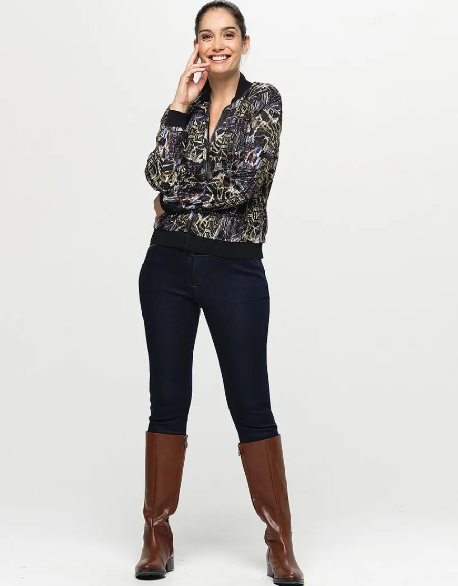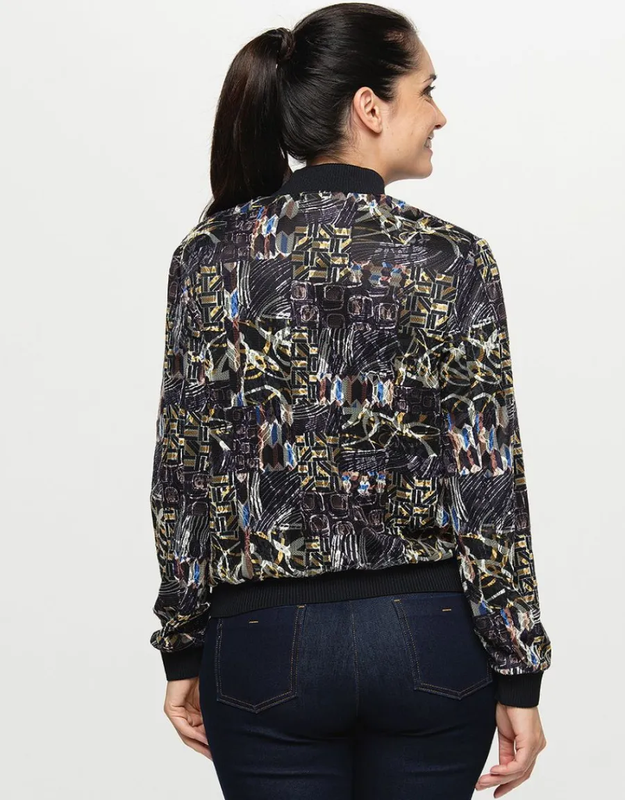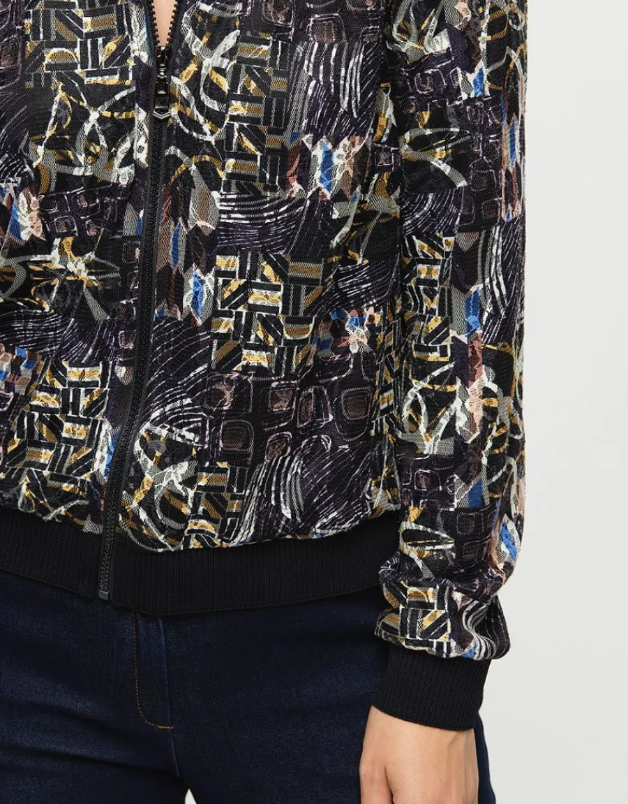 – Bombers résille noir imprimé beige et jaune
