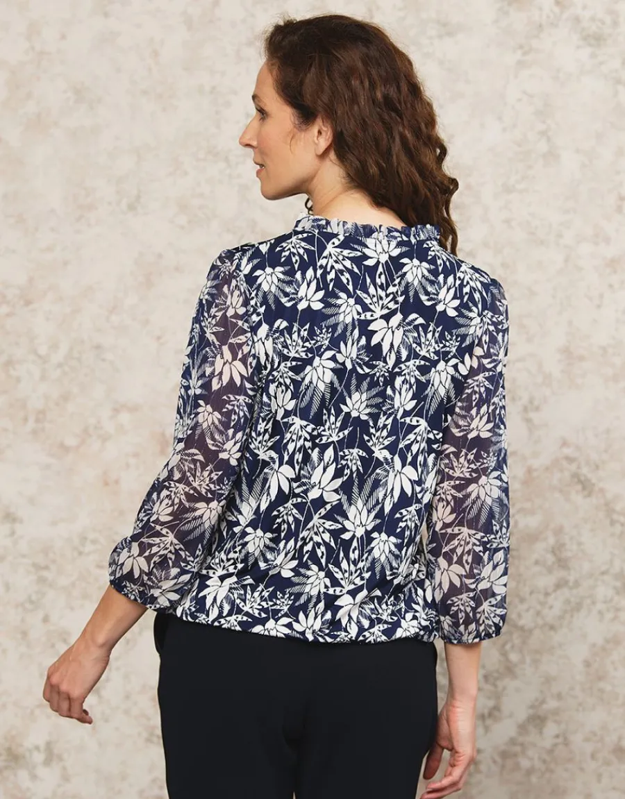 – Blouse bleue à imprimé fleuri blanc