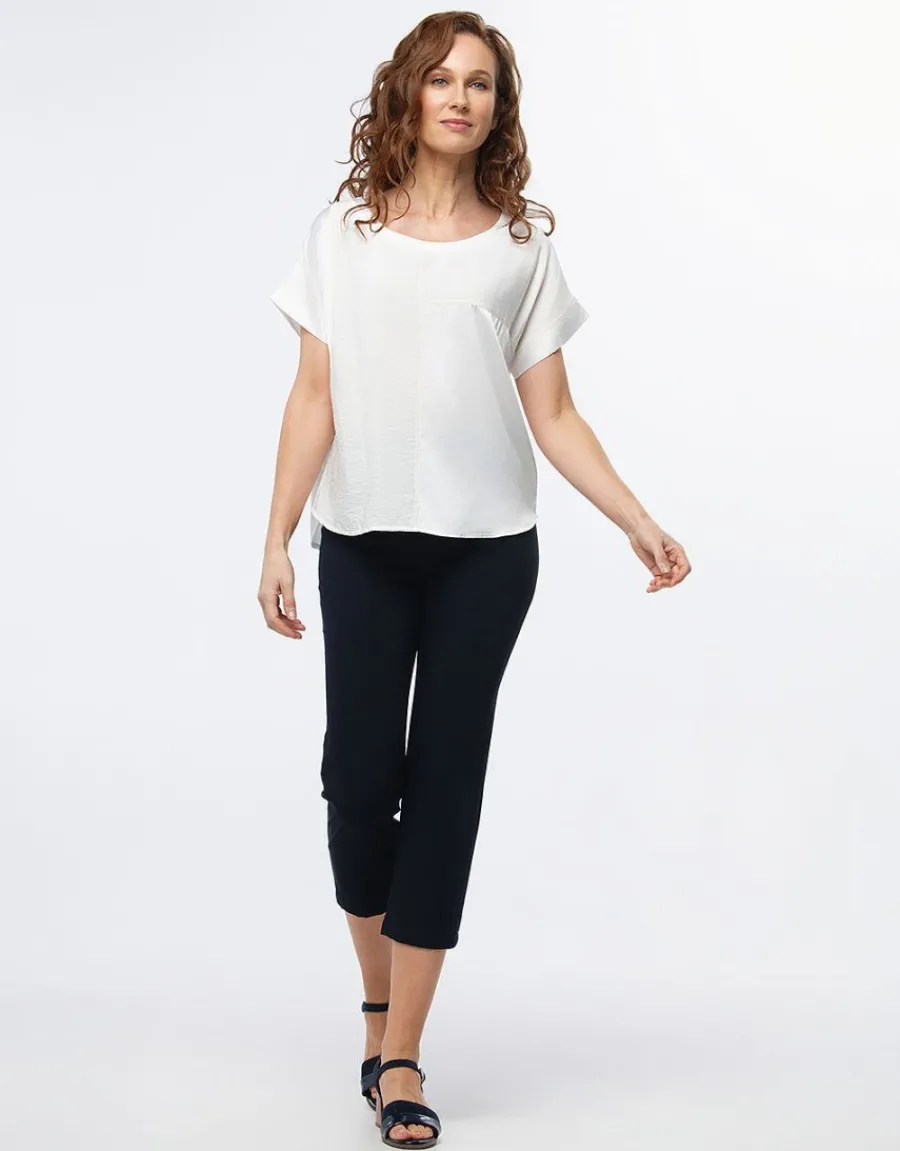 Découvrez la blouse habillée écrue bi-matière de la marque Christine Laure, une pièce élégante et raffinée qui apportera une touche de sophistication à votre garde-robe. Sa coupe droite assure un tombé fluide et agréable, tandis que l’encolure ronde et les manches courtes ajoutent une note de légèreté. Confectionnée dans un tissu fluide au fini satinée, cette blouse est non seulement légère mais aussi extrêmement confortable à porter tout au long de la journée. Les détails délicats, tels que les fils brodés dorés, viennent sublimer le design tout en ajoutant une touche de luminosité. Mesurant 63 cm pour la première taille, elle s’adapte aisément à diverses morphologies. Kristel, modèle mesurant 1,76 m, porte une taille 1, illustrant ainsi la coupe harmonieuse et élégante de ce vêtement. Que ce soit pour une soirée habillée ou une journée au bureau, cette blouse s’associera parfaitement à un pantalon élégant ou une jupe pour un look chic et moderne. Un choix idéal pour celles qui recherchent une pièce stylée. Avec cette blouse, le style rencontre le confort, offrant une silhouette flatteuse et un chic intemporel. N’attendez plus pour l’ajouter à votre collection.