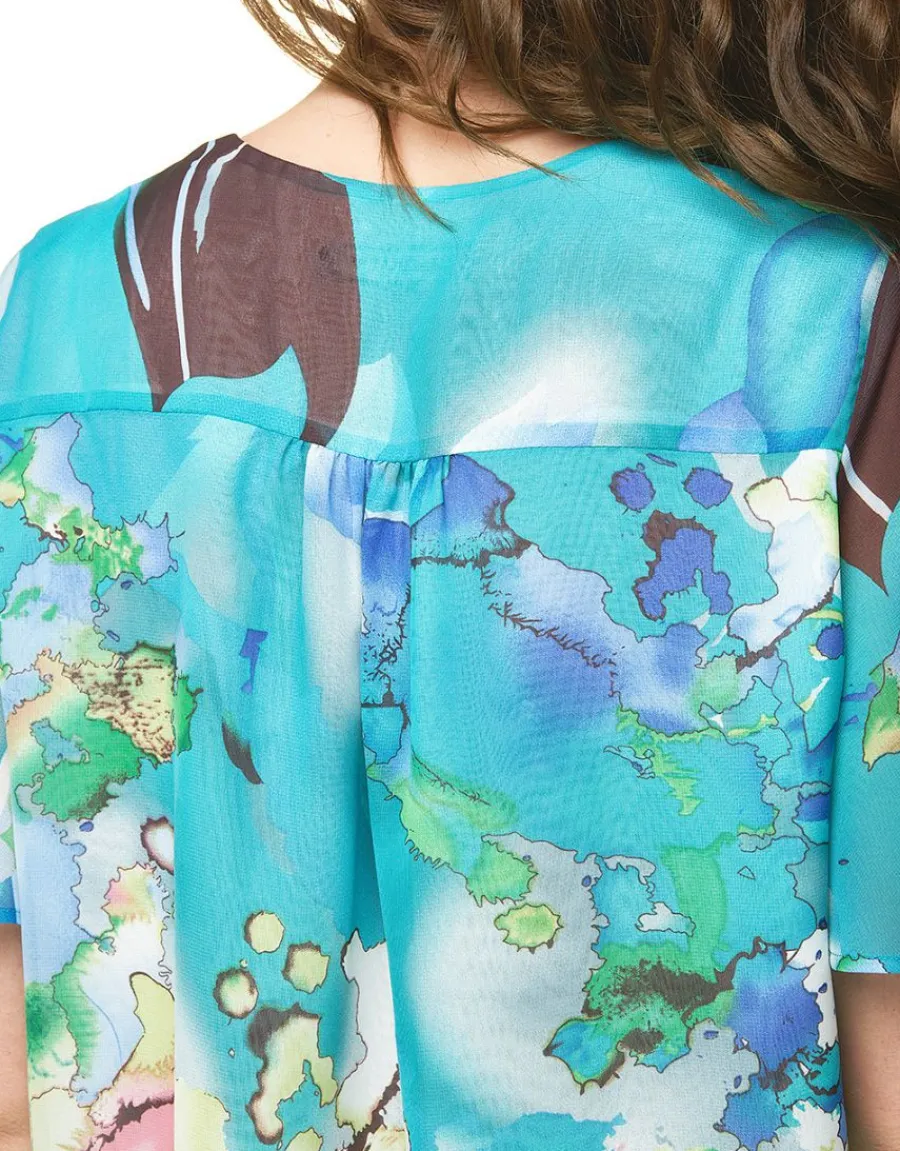 – Imprimé coloré bleu et vert