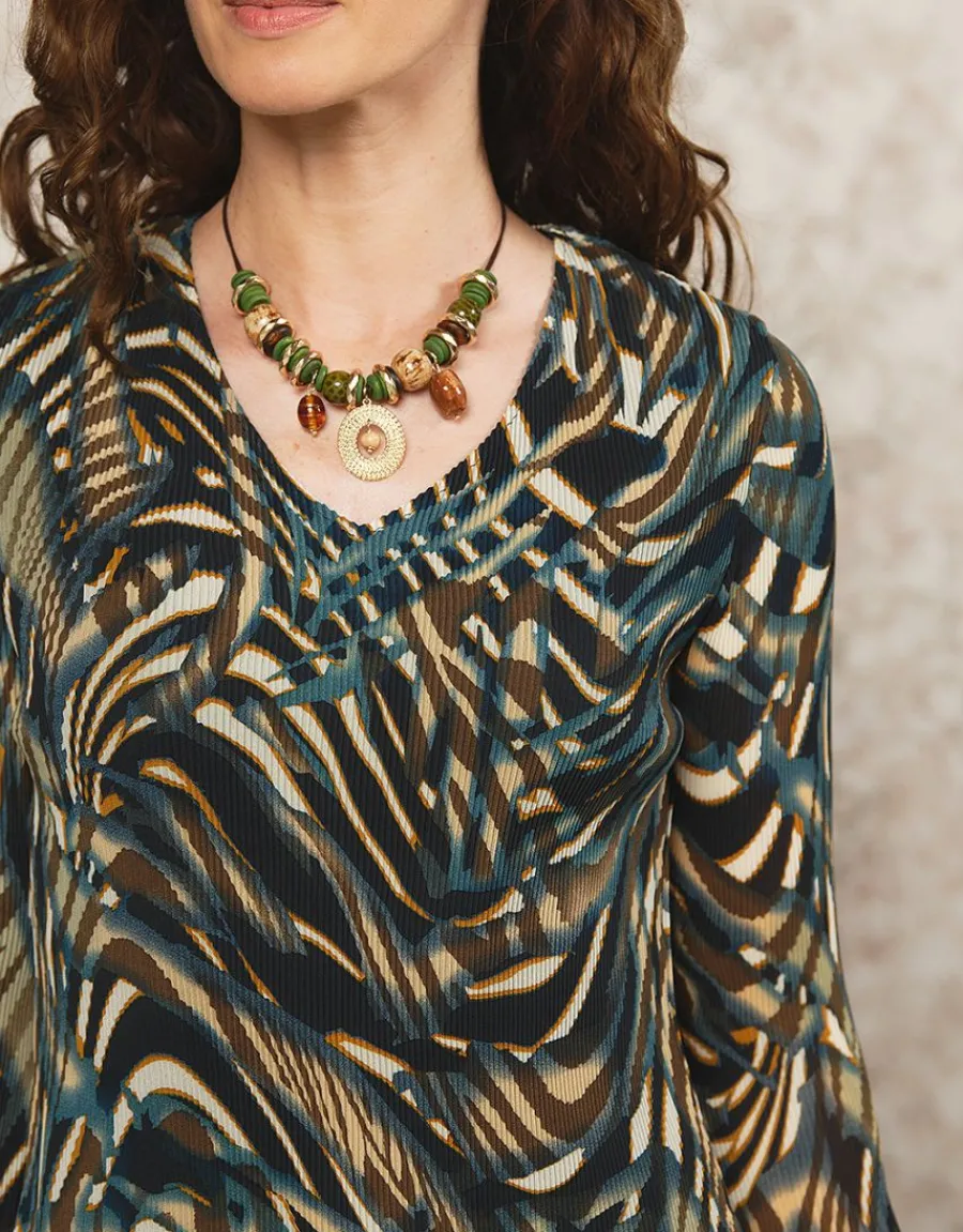 – Blouse plissé kaki et bleu marine