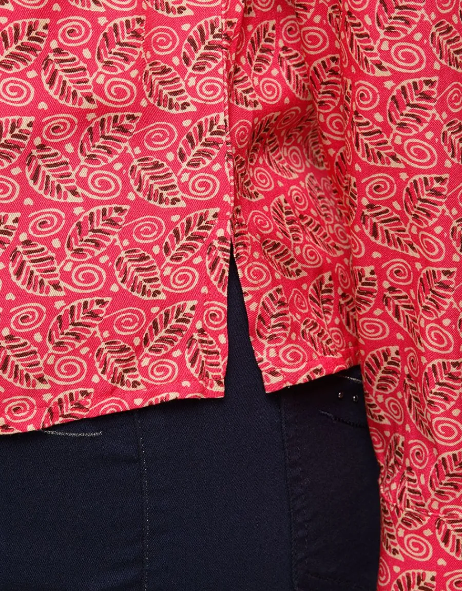 – Chemise rose corail à imprimé feuillage