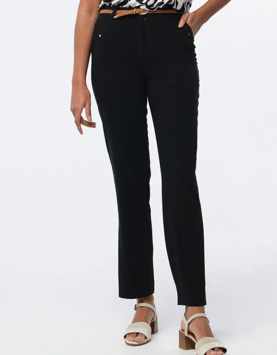 Le pantalon habillé noir de Christine Laure est une pièce essentielle pour une garde-robe élégante. Avec sa coupe régular et sa taille standard, il offre un confort optimal grâce à sa ceinture plate qui maintient parfaitement le dos. Ce modèle dispose de deux poches cavalières à l’avant, ornées d’un galon et d’un rivet, ajoutant une touche de sophistication à son design. Le zip et le bouton fantaisie en milieu devant viennent compléter l’esthétique de ce pantalon, en faisant un choix raffiné pour les occasions chic. Confectionné dans un tissu souple et agréable, il assure liberté de mouvement tout au long de la journée. Vendu sans ceinture, ce pantalon est versatile et peut être assorti avec différents accessoires selon vos envies. Juliana, mesurant 1,76 m, porte la taille 38, mettant en avant la coupe flatteuse de ce modèle. Avec une longueur de 101 cm pour la première taille, ce pantalon est parfait pour allier confort et élégance. Il s’intègre facilement dans diverses tenues, que ce soit pour un bureau, un rendez-vous ou une soirée. Adoptez ce pantalon chic pour un look intemporel et contemporain, adapté à toutes les occasions.