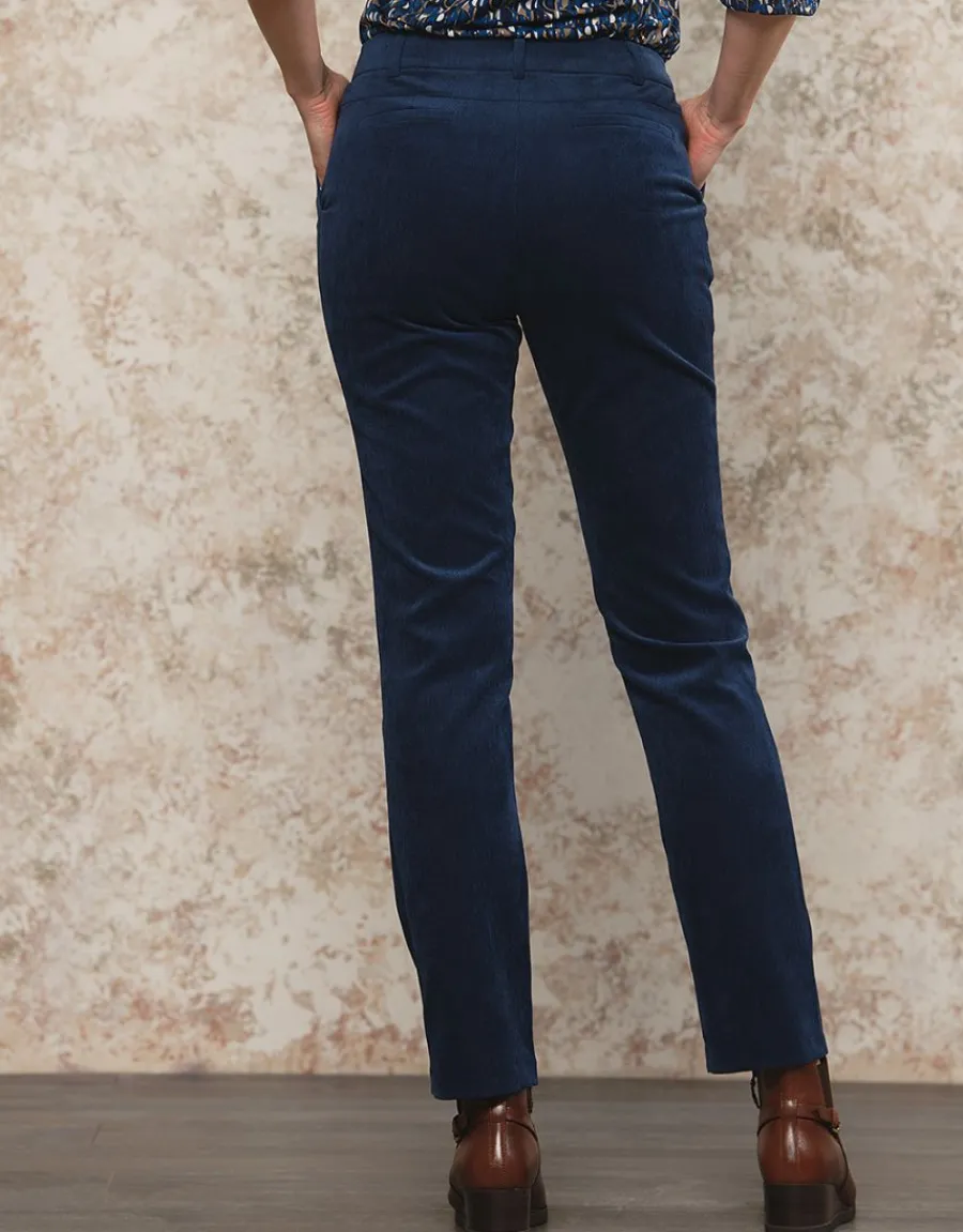 – Pantalon en fin velours côtelé bleu nuit