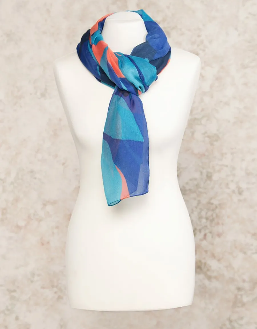 – Foulard bleu, turquoise et orange imprimé