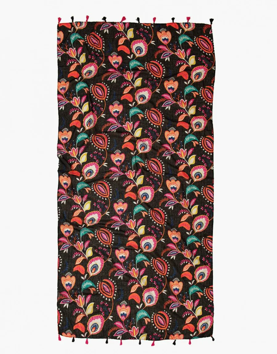 – Foulard noir imprimé floral rouge et ocre