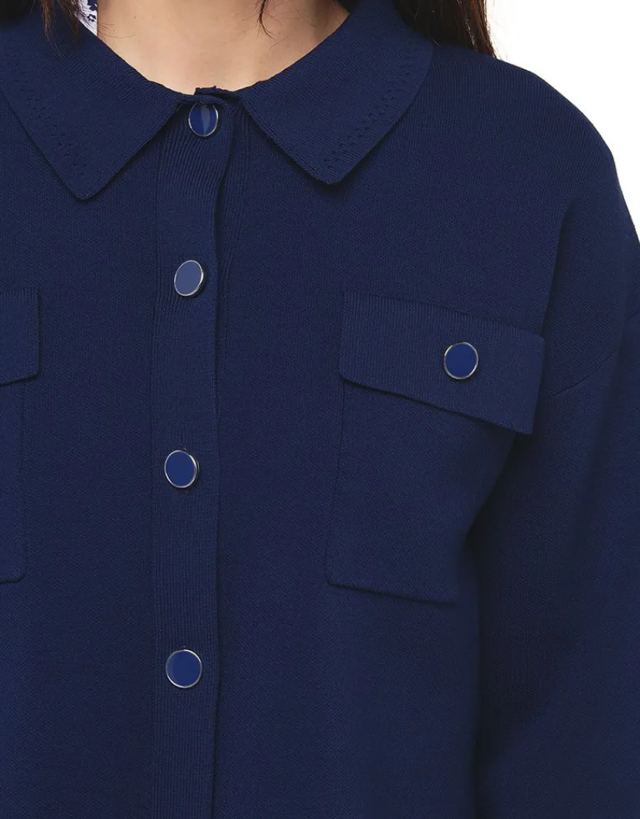 – Gilet bleu marine boutonné
