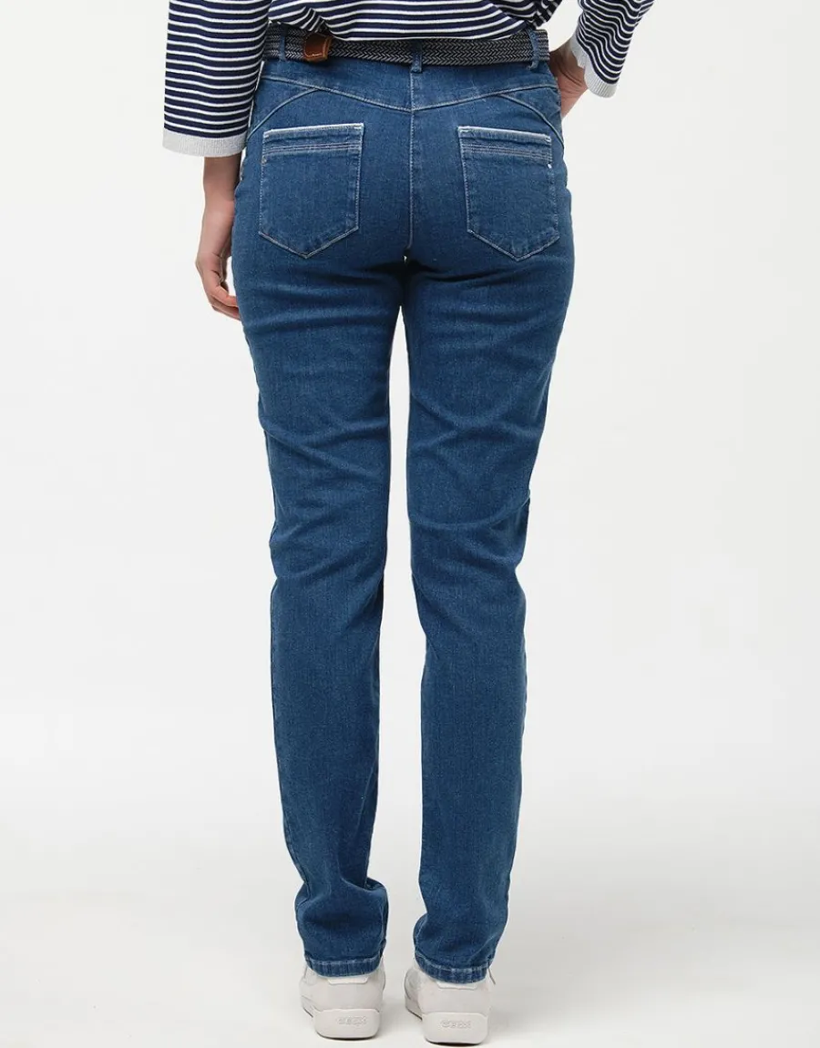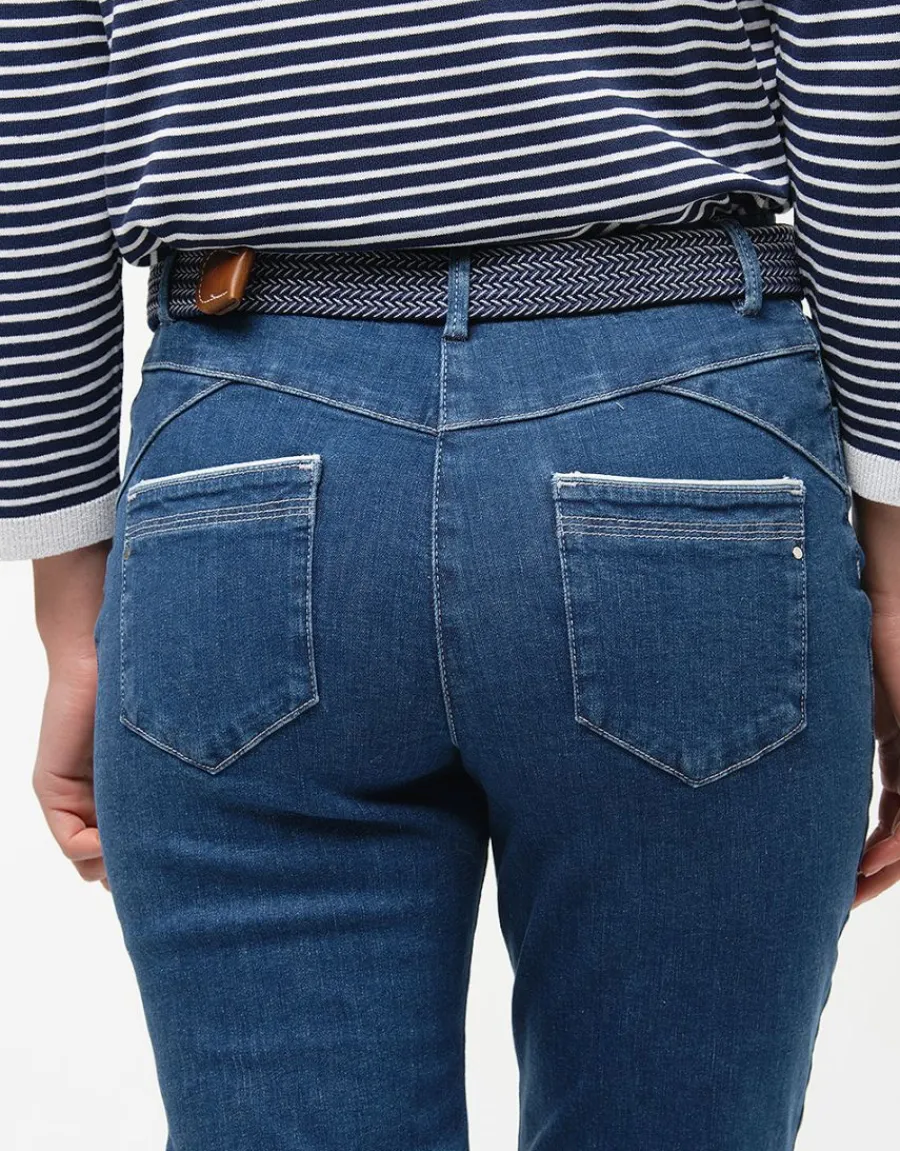 Bon pied, bon look avec ce jean à la coupe étudiée pour mettre en valeur vos formes. Il vous fait la jambe longue et son délavage est juste idéal pour le printemps. Détails mode : les surpiqûres blanches et le liseré qui souligne les poches.