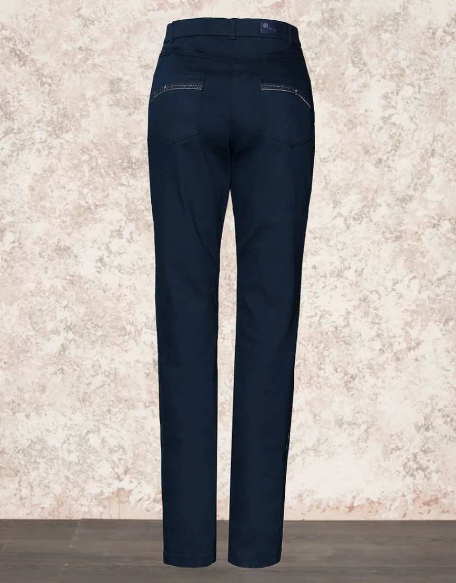 Découvrez le pantalon jean chic bleu marine, véritable essentiel de votre garde-robe. Avec sa coupe ajustée le long de la jambe, il sublime votre silhouette tout en offrant un confort incomparable grâce à sa matière ultra stretch. Idéal pour toutes les occasions, ce pantalon est un véritable « must-have ». Connu comme LE PANTALON MAGIQUE, il combine style et praticité pour devenir une pièce incontournable que vous adorerez porter encore et encore. Kristell mesure 1,76m et porte une taille 38, illustrant parfaitement la coupe flatteuse et l’élégance intemporelle de ce pantalon jean chic.