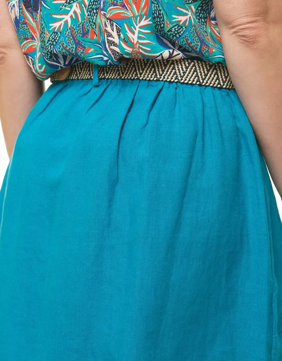 – Taille haute avec ceinture tressée noire et beige élastiquée