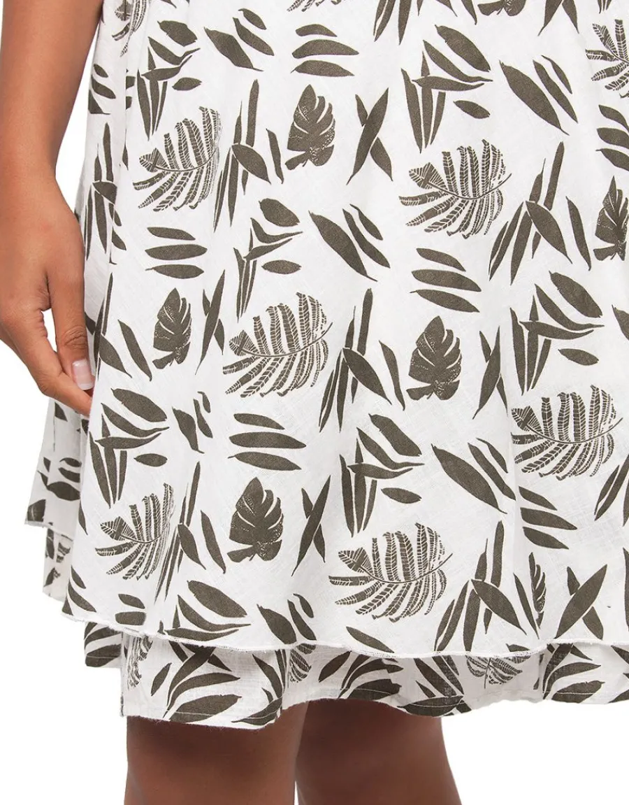 – Imprimé feuillage kaki sur fond blanc
