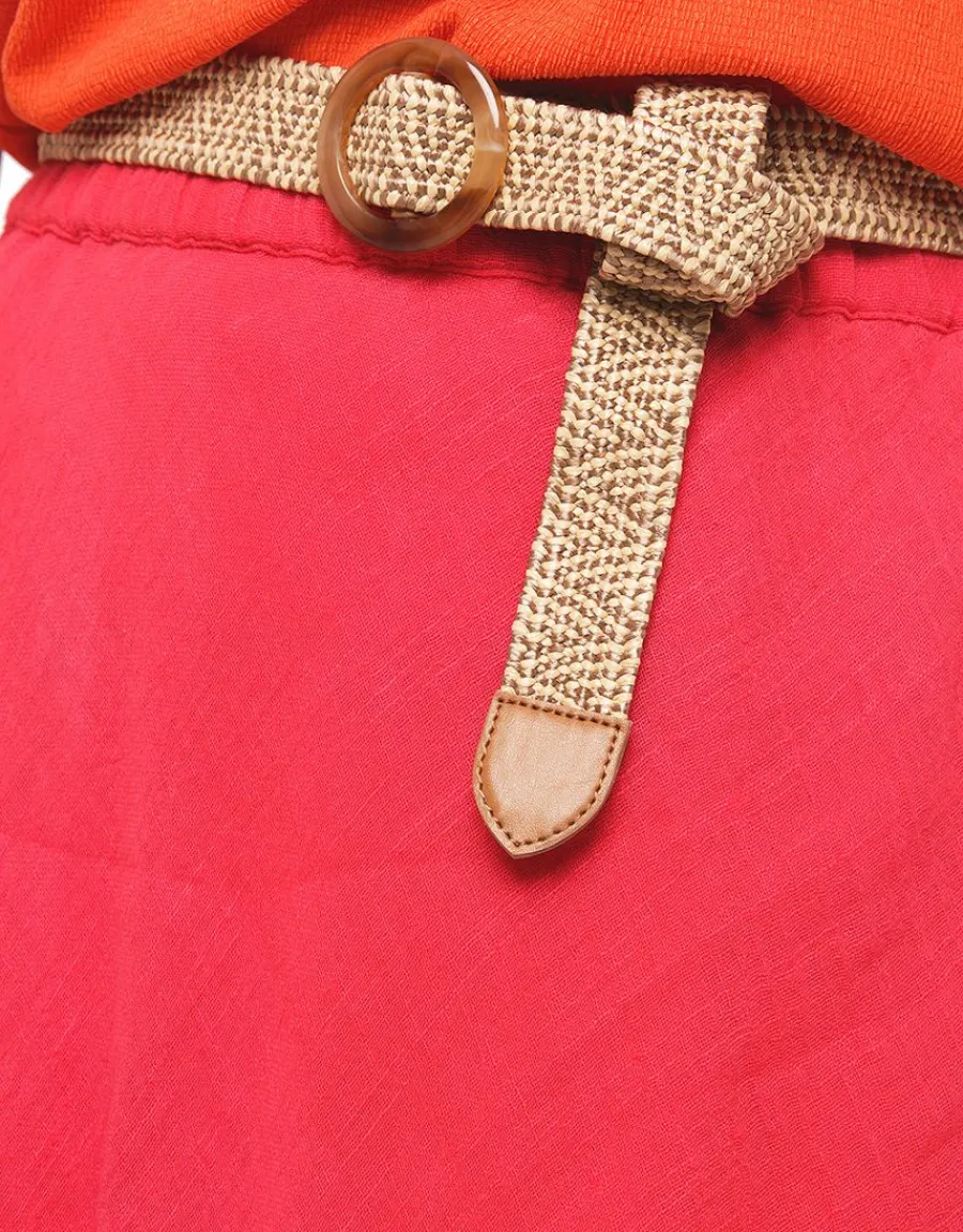 – Pour une allure aussi précise que confortable, on adopte cette jupe rosée parfaite pour l’été