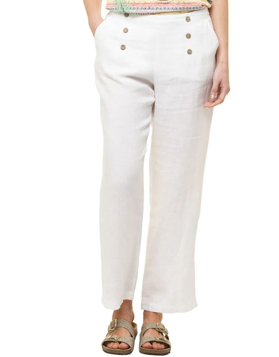 – Ce pantalon en pur lin blanc vous habille tout en légèreté !