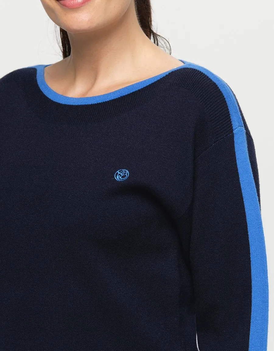 – Pull bicolore bleu maille milano