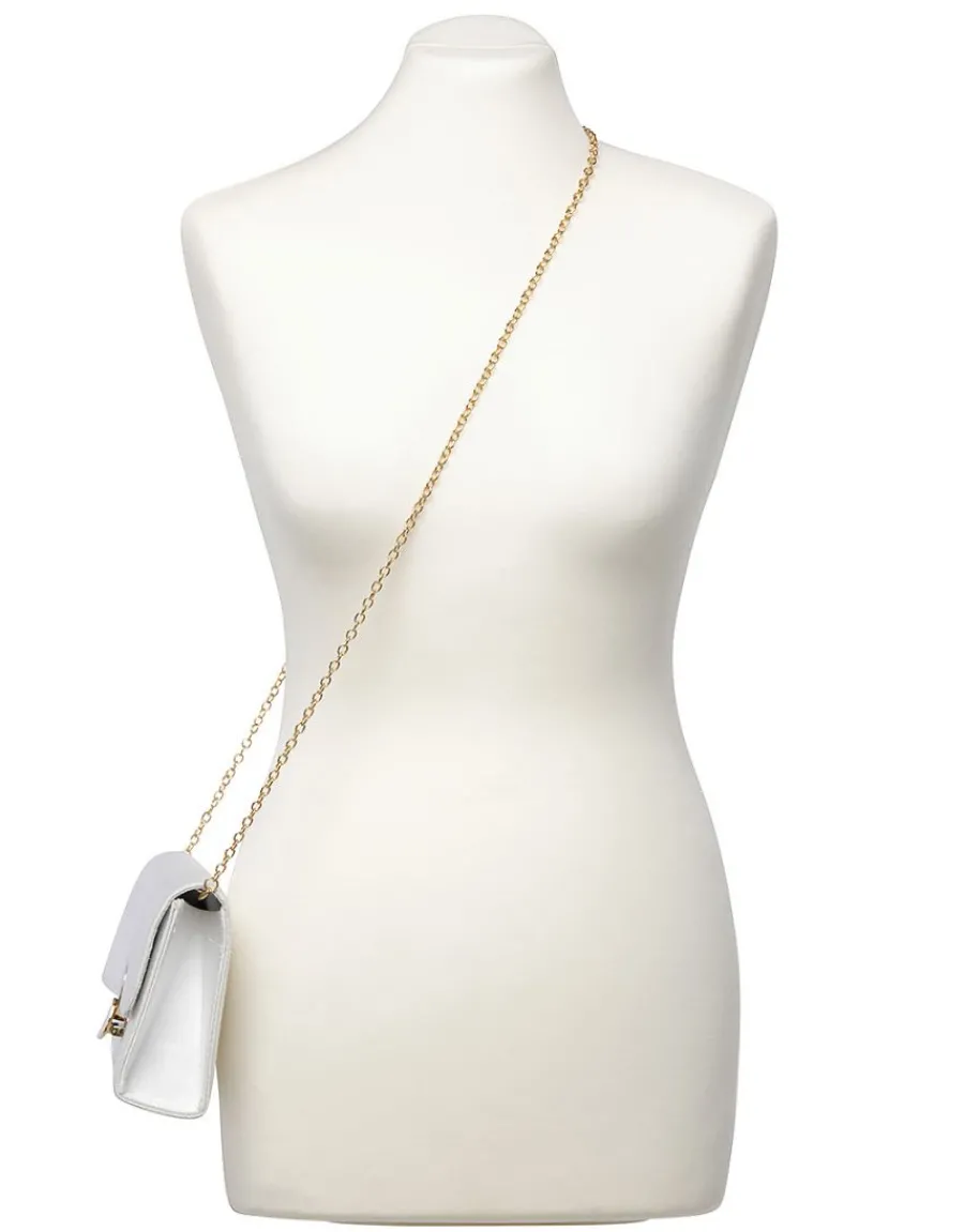 Découvrez cette pochette chic écru de la marque Christine Laure, qui allie élégance et praticité. Sa forme rectangulaire est soigneusement conçue pour offrir une allure sophistiquée tout en restant fonctionnelle. Le rabat délicat, orné d’un fermoir doré raffiné, ajoute une touche de classe à ce modèle intemporel. Enveloppée dans une finition soignée, cette pochette à la fois contemporaine et classique se marie aisément avec vos tenues de soirée ou vos looks quotidiens. Dotée d’une petite poche intérieure, elle permet de garder en ordre vos essentiels, tout en facilitant l’accès à vos indispensables. Avec des dimensions de 22 cm x 13 cm x 5,5 cm, elle se glisse facilement sous le bras tout en offrant un espace suffisant pour accueillir votre téléphone, vos cartes et vos petits objets personnels. La chaîne dorée, subtile et raffinée, se transforme en un accessoire à part entière, apportant une note de glamour à l’ensemble. Que vous assistiez à un cocktail ou que vous vous rendiez à un dîner, cette pochette chic écru sait se faire remarquer par son style inimitable. Associez-la à vos tenues préférées pour un look stylé et sobre qui ne passera jamais inaperçu. Élégante et fonctionnelle, elle incarne l’essence du luxe moderne, faisant d’elle un incontournable de votre garde-robe. Offrez-vous ce bijou de mode pour ajouter une dimension sophistiquée à votre collection d’accessoires.