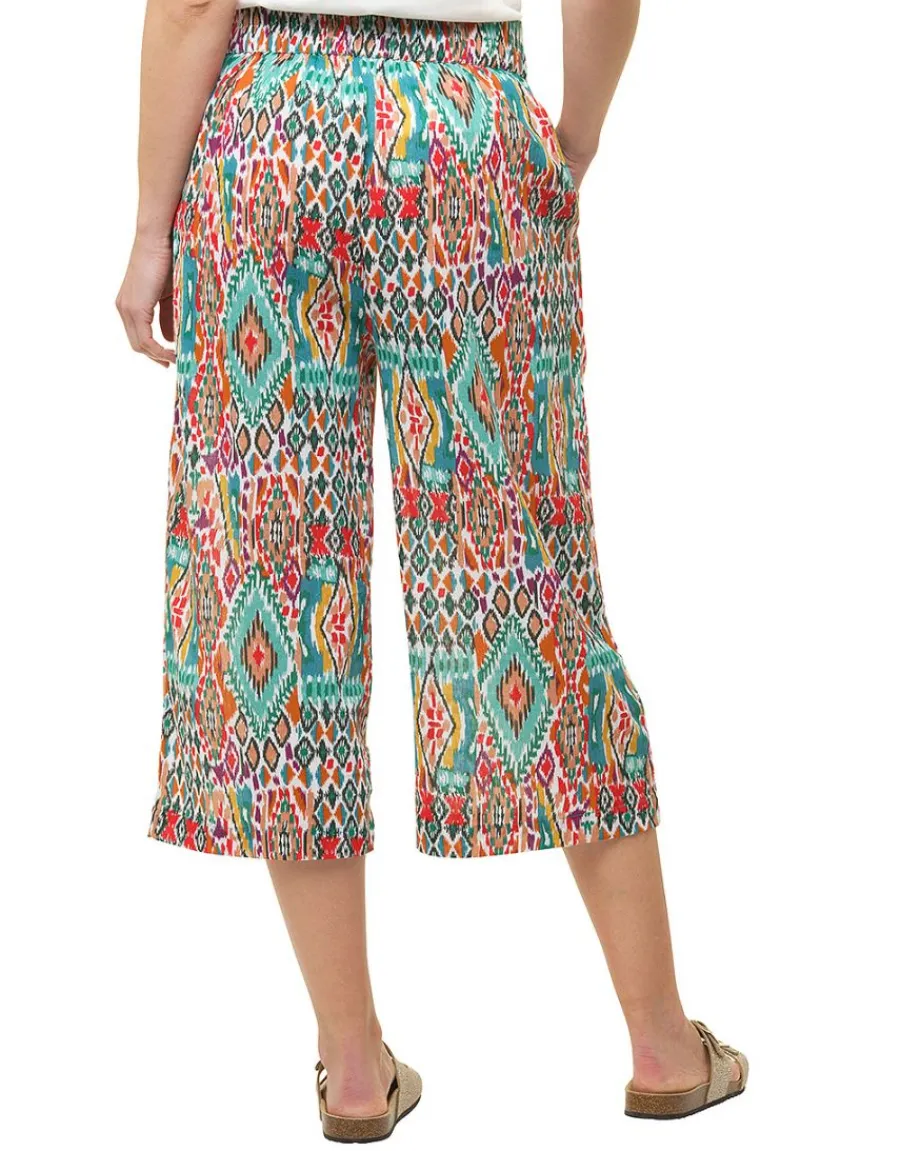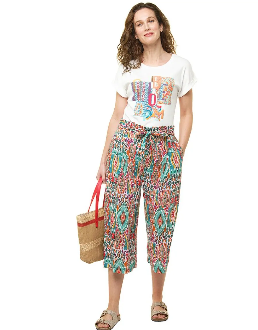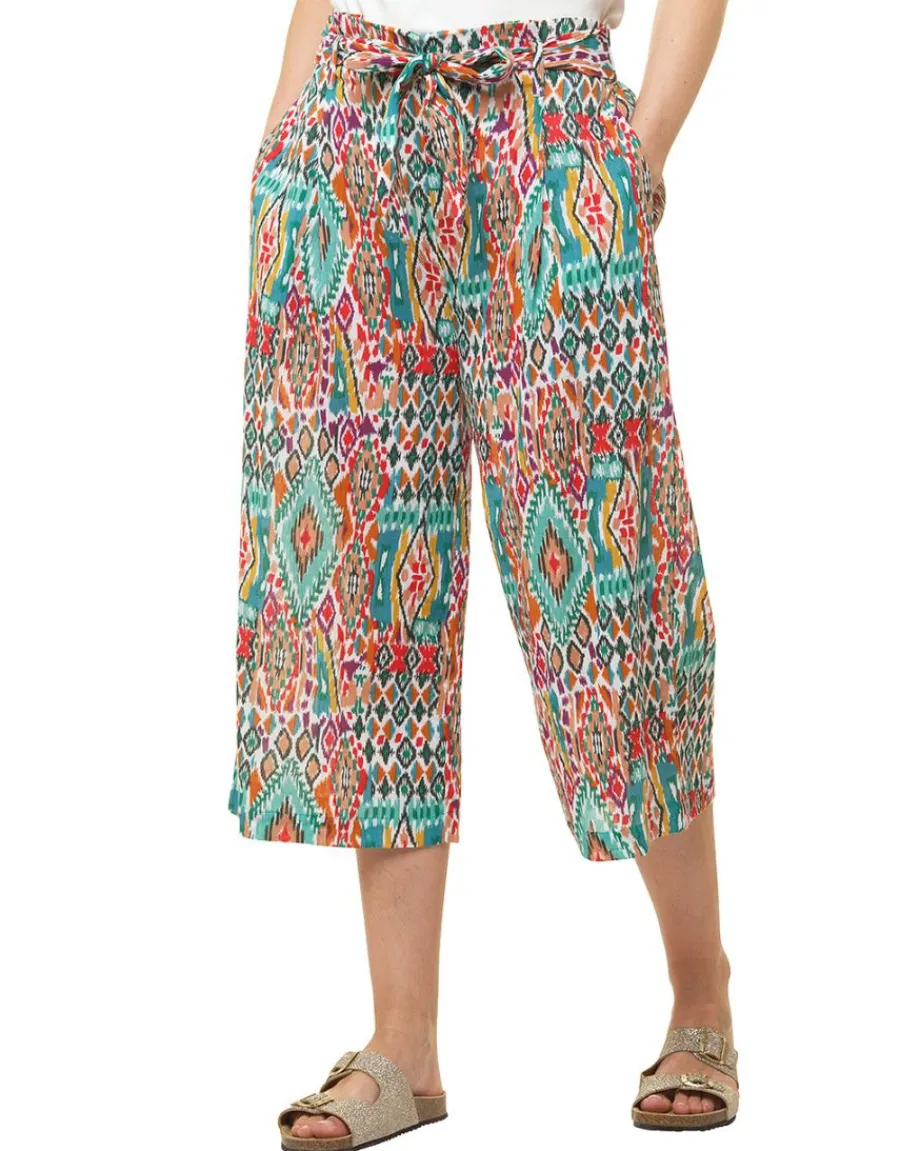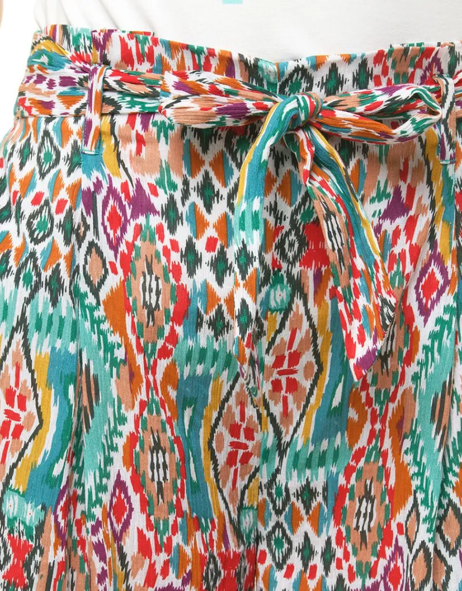 – Pantacourt imprimé vert, rouge et orange