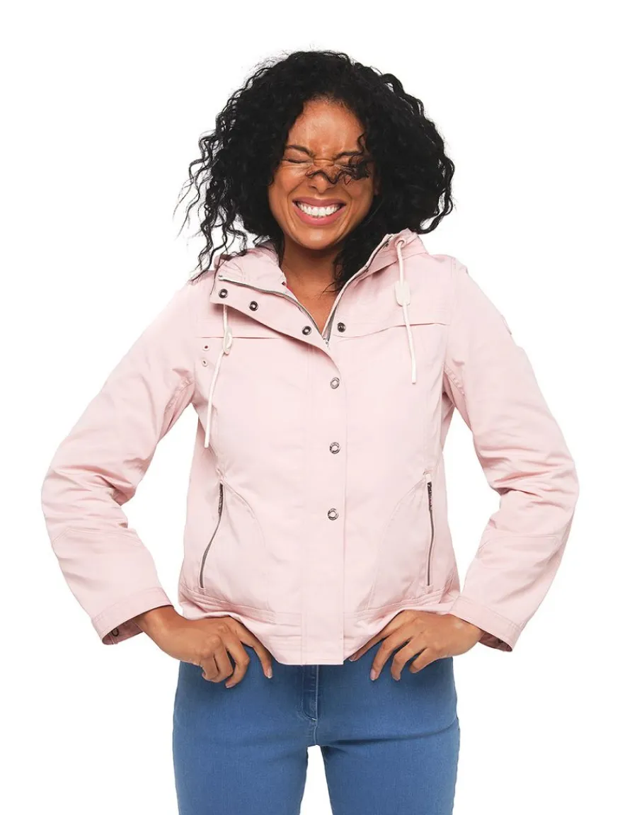 – Détails mode : Une capuche avec liseré irisé et deux cordons pour resserrer la capuche