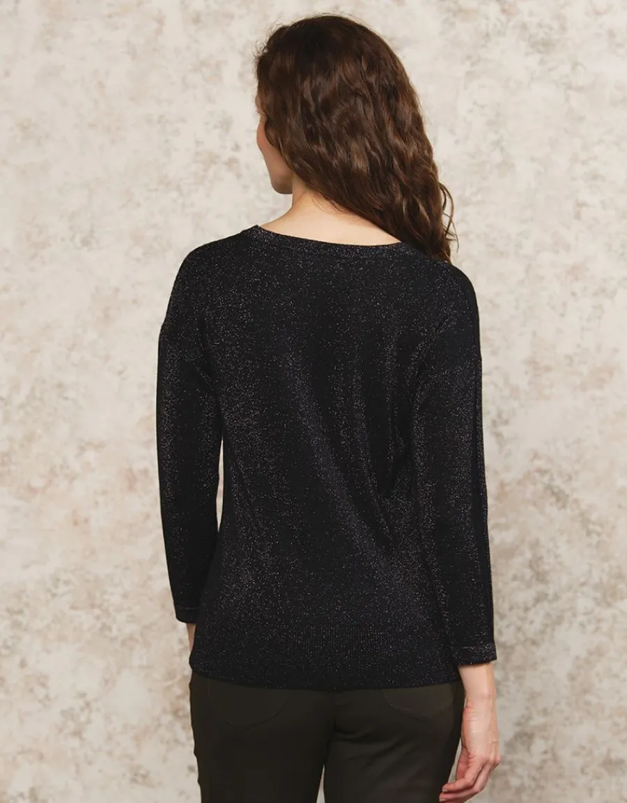 Découvrez le pull chic brillant noir de Christine Laure, une pièce élégante qui allie confort et sophistication. Ce pull se distingue par sa maille fantaisie en acrylique, offrant un effet brillant grâce à l’intégration de fils métallisés. Sa coupe droite et ses manches 3/4 apportent une touche moderne, tandis que l’encolure ronde soulignée d’un bord-côte ajoute une finition raffinée. Idéal pour les occasions spéciales ou pour apporter une note d’éclat à votre tenue quotidienne, ce pull noir est un incontournable de votre garde-robe.