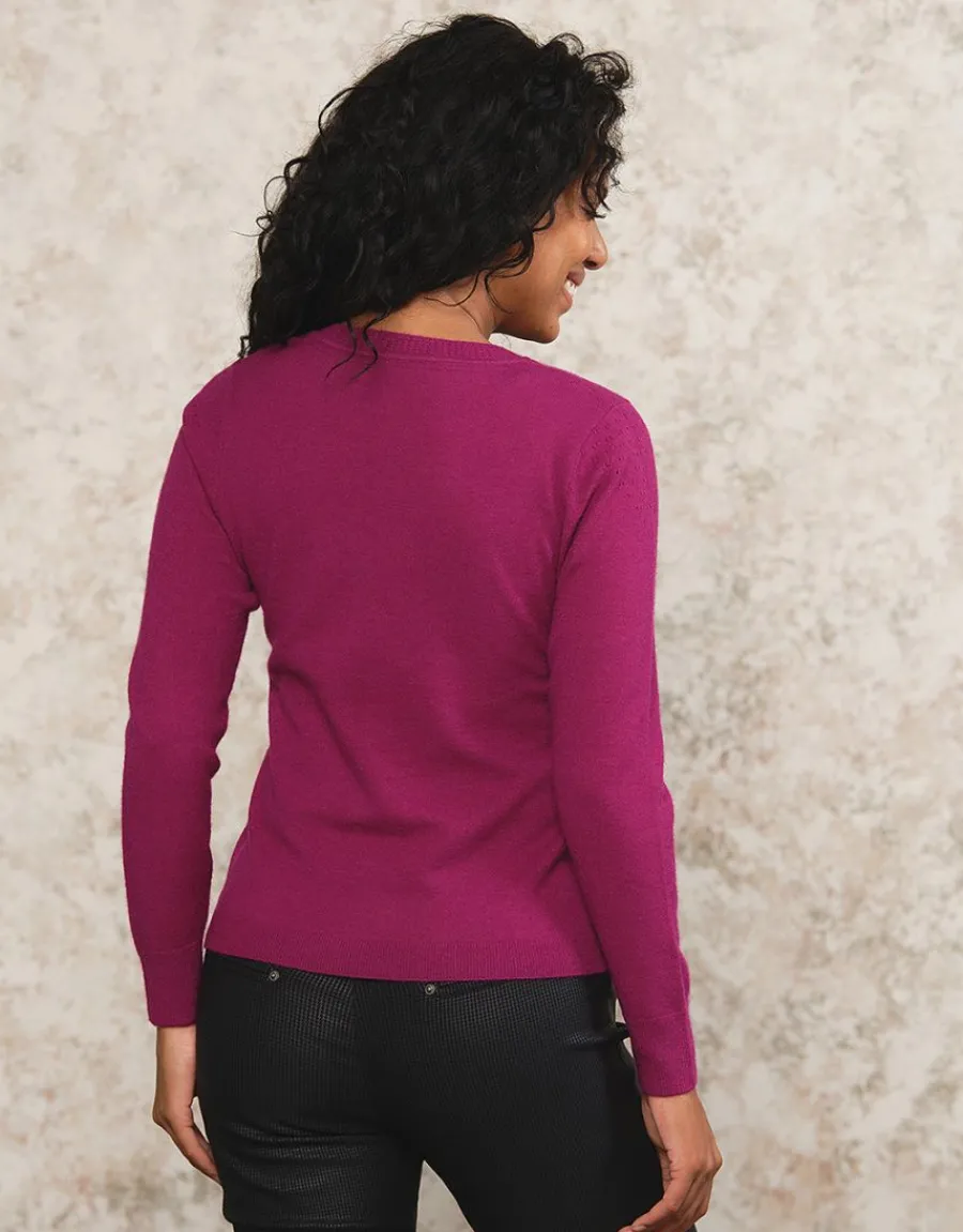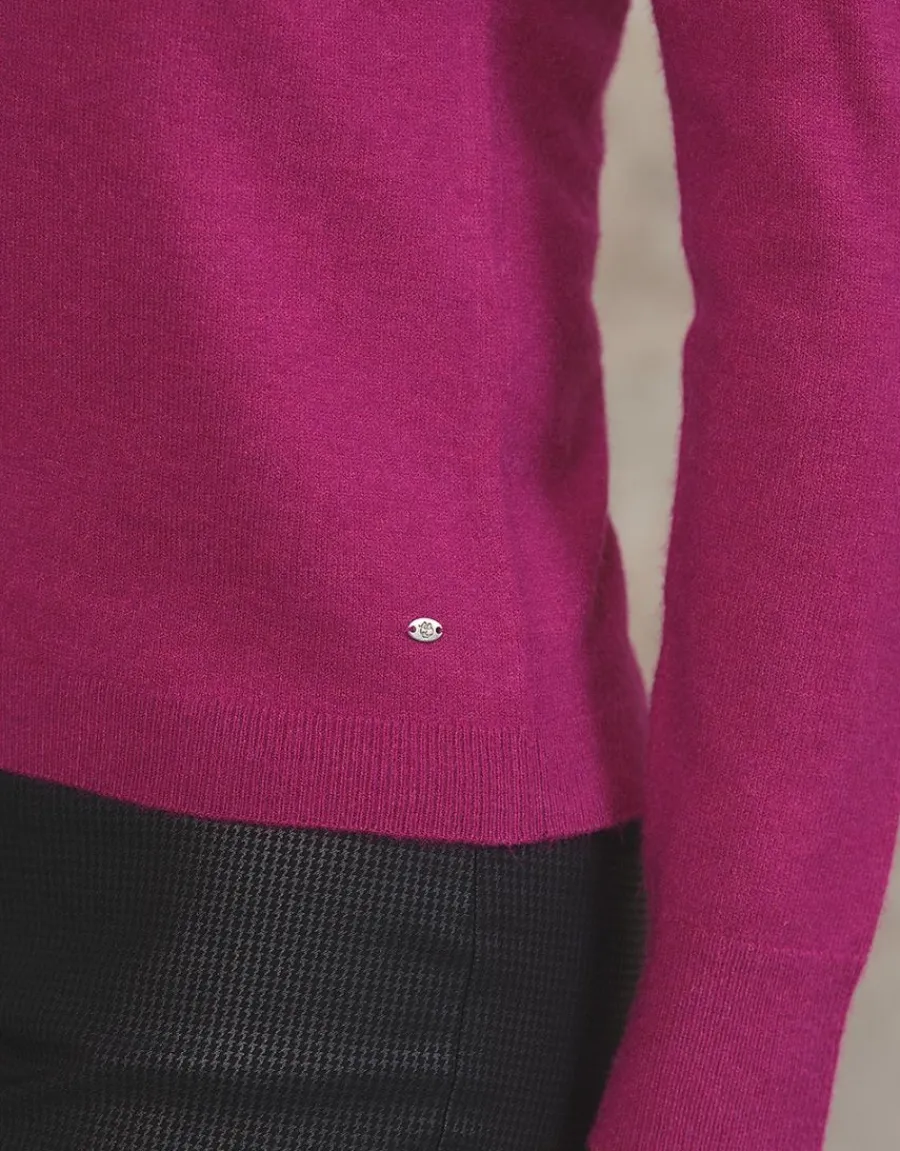 – Une petite touche de laine qui vient apporter une vraie chaleur à ce pull fin et féminin. Son encolure en goutte d’eau est mise en valeur par un ajouré délicat.