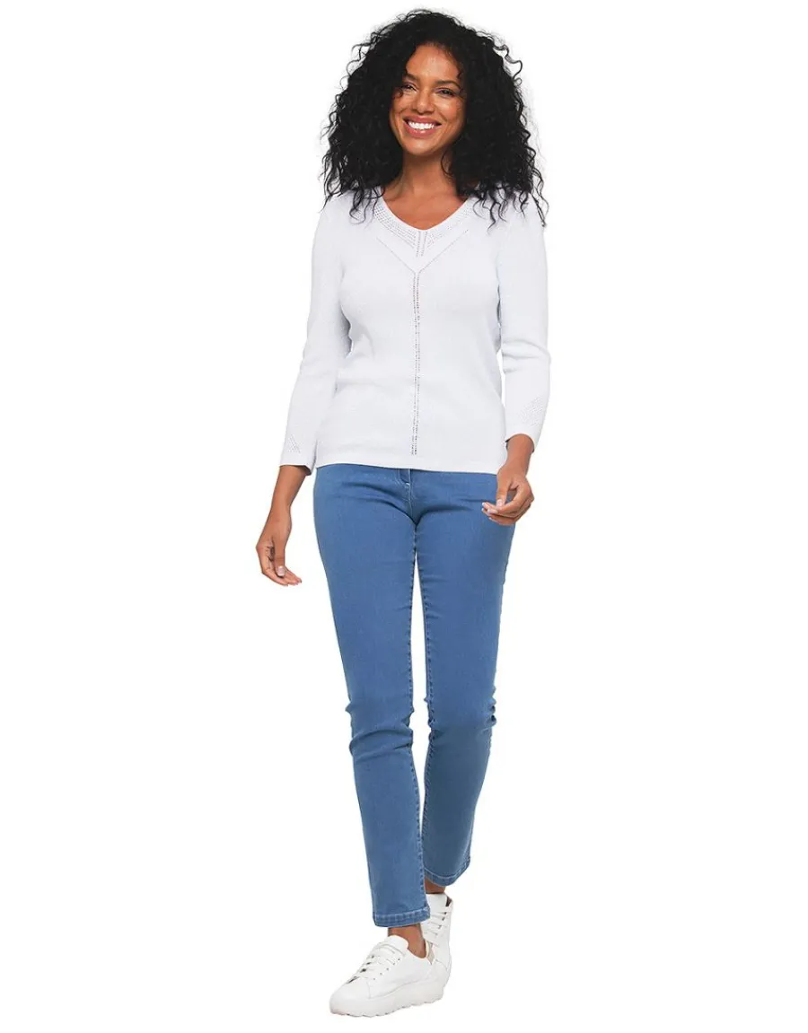 – Encolure en V soulignée d’un point fantaisie ajouré