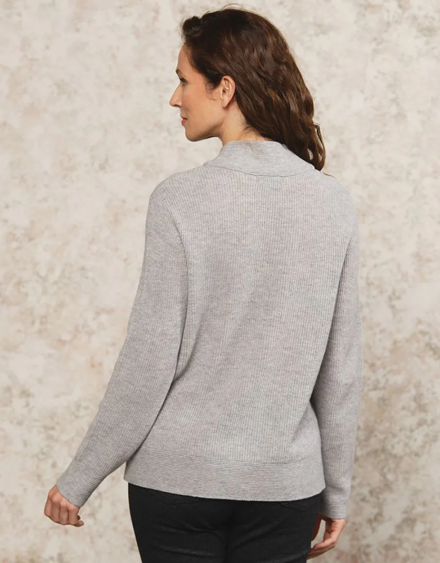 Particulièrement douillet avec son col montant, ce pull séduira les amatrices de matières nobles : 90% laine, 10% cachemire. Une jauge généreuse pour affronter l’hiver. Le pull en laine gris perle présente un dessin ajouré devant, ajoutant une touche d’élégance à sa coupe droite. Les manches longues offrent une protection supplémentaire contre le froid, tandis que le col montant cheminé ajoute une note de sophistication. Fabriqué à partir de 90% de laine et 10% de cachemire, ce pull allie chaleur et douceur pour un confort optimal. Sa composition de haute qualité garantit une sensation agréable sur la peau et une excellente isolation thermique. La longueur de 59 cm pour la première taille assure un tombé parfait, mettant en valeur la silhouette. Que ce soit pour une journée décontractée à la maison ou une sortie en ville, ce pull en laine et cachemire est un choix polyvalent et intemporel. Associez-le à un jean pour un look casual chic ou à une jupe pour une allure plus élégante. Avec sa couleur gris perle, il s’harmonisera facilement avec le reste de votre garde-robe. Porté par Kristel qui mesure 1,76m et porte du 38, ce pull s’adapte à différentes morphologies et met en valeur la silhouette féminine. Sa jauge moyenne en côtés lui confère une texture agréable au toucher, tandis que le mélange de laine et de cachemire assure une douceur incomparable. Offrez-vous ce pull en laine et cachemire pour rester au chaud avec style tout au long de la saison hivernale. Son design classique et ses finitions soignées en font un incontournable de votre dressing. Confortable, élégant et facile à assortir, il deviendra rapidement un indispensable de votre garde-robe pour affronter les journées fraîches avec allure.