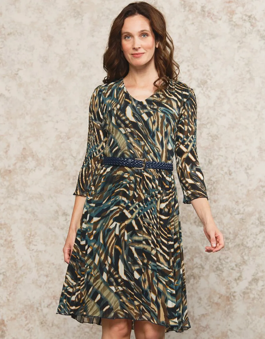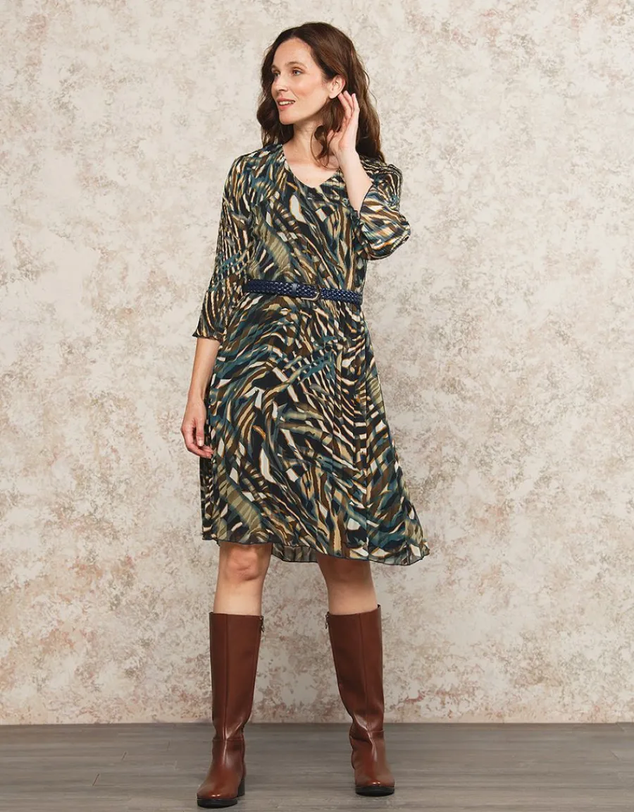 – Robe plissée kaki et bleu marine