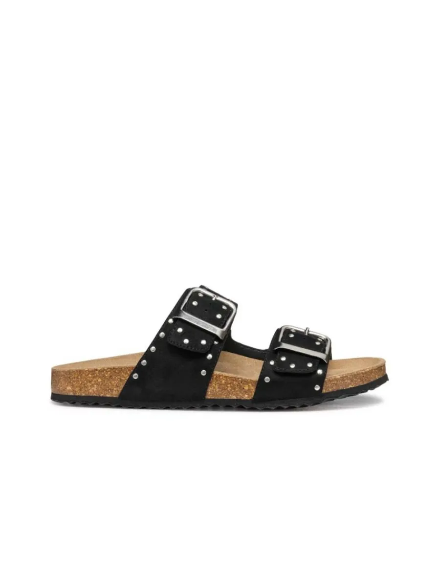 – Sandales plates type mules noires Geox modèle Brionia R
