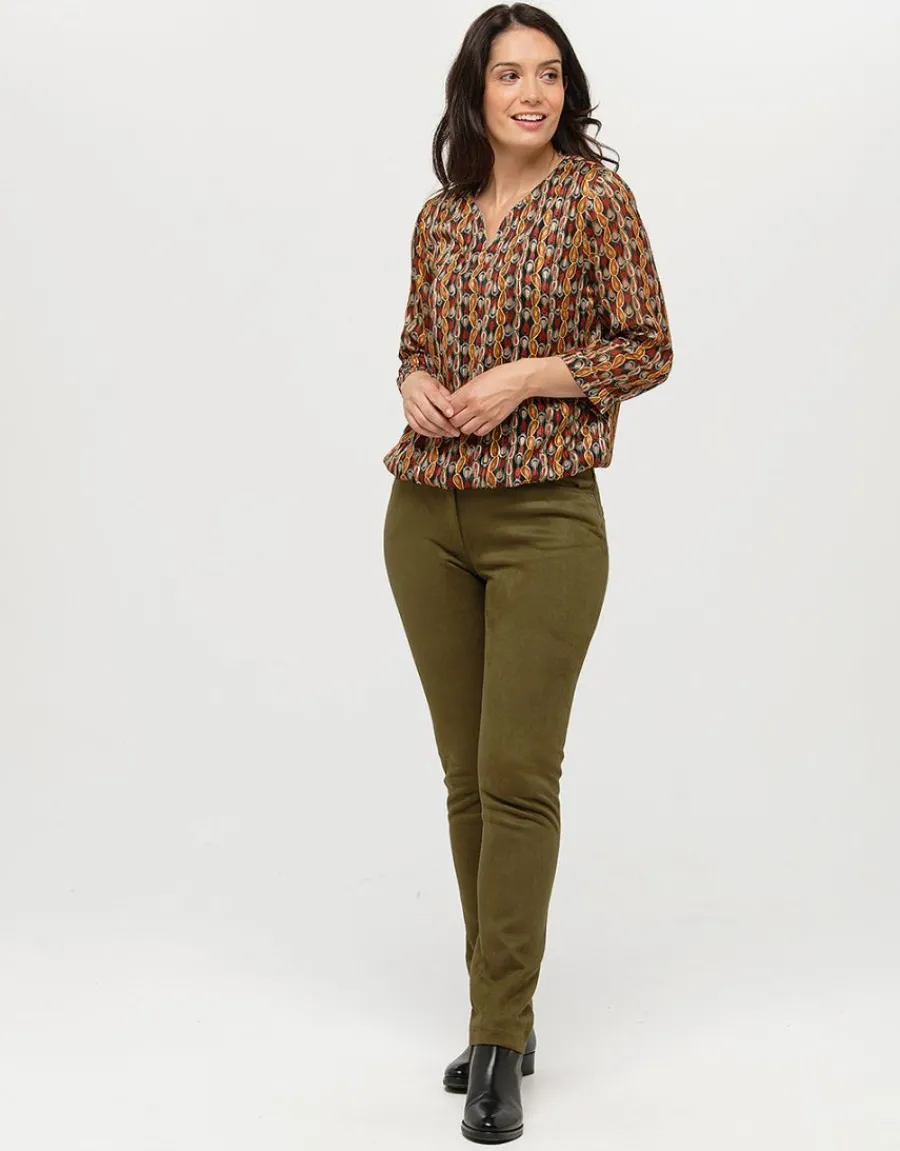 – Pantalon coupe jean en suédine vert kaki
