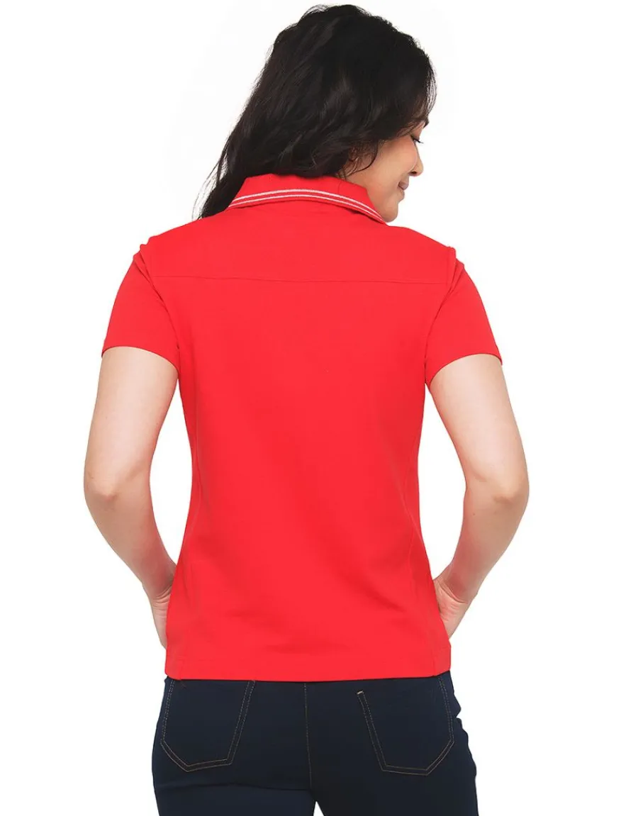 – Must-have de tous les outfits sport, le polo se décline dans un coloris rouge pep’s très lumineux.