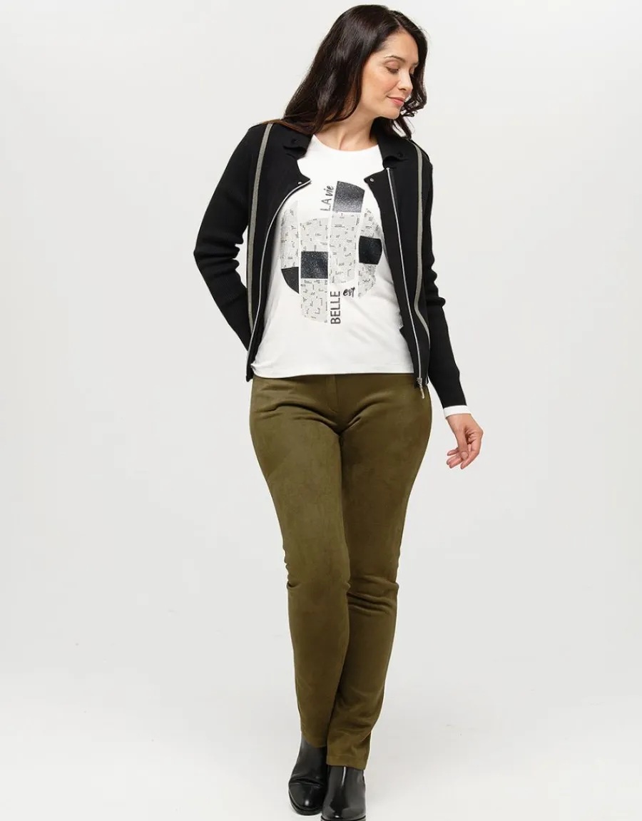 Ce t-shirt blanc avec motif glitter est un incontournable de votre garde-robe. Sa coupe droite et son encolure ronde en font un basique facile à porter au quotidien. Fabriqué en jersey stretch, il offre un confort optimal tout au long de la journée. Ses manches 3/4 ajoutent une touche d’originalité à ce modèle classique. Le détail mode de ce t-shirt réside dans le motif sérigraphié sur l’avant. Ce motif mêle des pixels argentés et des aplats noirs brillants pour un effet scintillant et tendance. Associez ce t-shirt à vos blazers noirs pour un look chic et décontracté à la fois. Que ce soit pour une journée de travail ou une soirée entre amis, ce t-shirt apportera une touche de glamour à votre tenue. Emma, qui mesure 1,76m, porte du 38 et met en valeur ce t-shirt avec élégance. Sa composition en 95% viscose et 5% élasthanne garantit une qualité et une douceur incomparables. Sa longueur de 60 cm du haut de l’épaule jusqu’en bas pour la première taille convient à toutes les morphologies. Ajoutez ce t-shirt blanc imprimé à votre dressing pour une touche de brillance et de modernité. Que ce soit avec un jean, une jupe ou un pantalon, il s’adaptera à toutes vos tenues. Ne passez pas à côté de ce basique revisité qui fera sensation à coup sûr.
