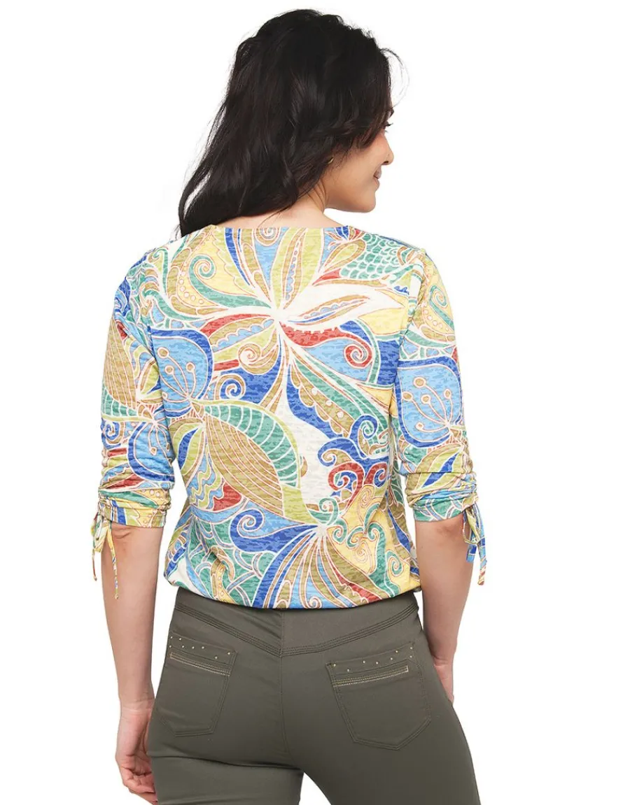 – Manches 3/4, bas de manche plissé avec un lien