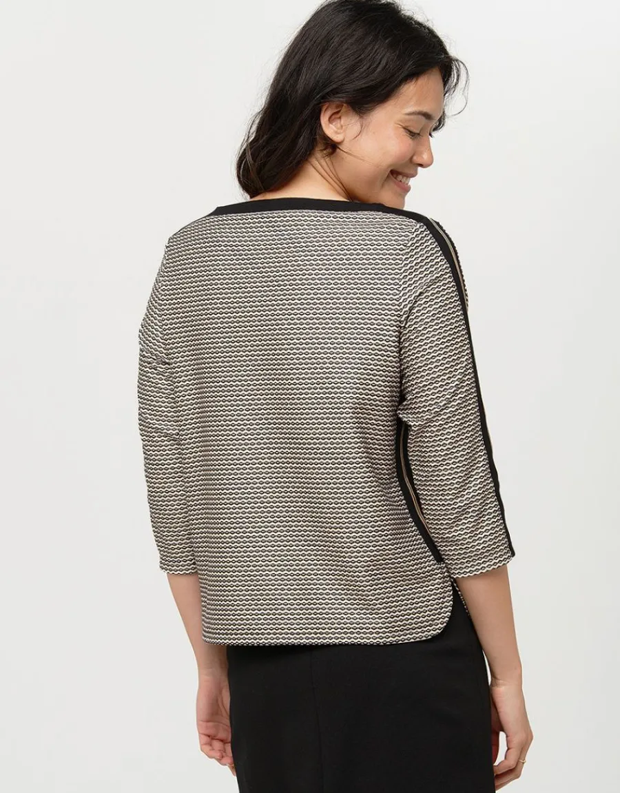Le « Top maille ample noir » est un incontournable de votre garde-robe. Avec son esprit t-shirt en maille milano à motifs, il offre une coupe ample et droite pour un confort optimal. Son encolure ronde et sa maille milano stretch apportent une touche de modernité à votre tenue. Les manches 3/4 ajoutent une touche d’originalité, tandis que la poche plaquée en simili cuir matelassé apporte une touche d’élégance. Les détails soignés de ce top ne manqueront pas de vous séduire : un galon autour de l’encolure, avec un rappel sur le dessus des manches et sur les côtés. Décontracté et tendance, ce top tunique à mini motifs vous permettra d’ajouter une touche mode à vos slims et chinos noirs. Que ce soit pour une journée décontractée ou une soirée entre amis, ce top saura vous accompagner en toute occasion. Bérengère, qui mesure 1,76m, porte du 38 et met en valeur ce top avec élégance. Sa composition en 95% polyester et 5% élasthanne garantit un tombé parfait, tandis que les garnitures en viscose, polyamide et polyester ajoutent une touche de sophistication. Avec une longueur de 62 cm du haut de l’épaule jusqu’en bas pour la première taille, ce top s’adaptera à toutes les morphologies. En somme, le « Top maille ample noir » est un indispensable de votre dressing. Confortable, élégant et tendance, il saura vous accompagner au quotidien avec style. N’hésitez plus et ajoutez-le à votre collection dès maintenant.