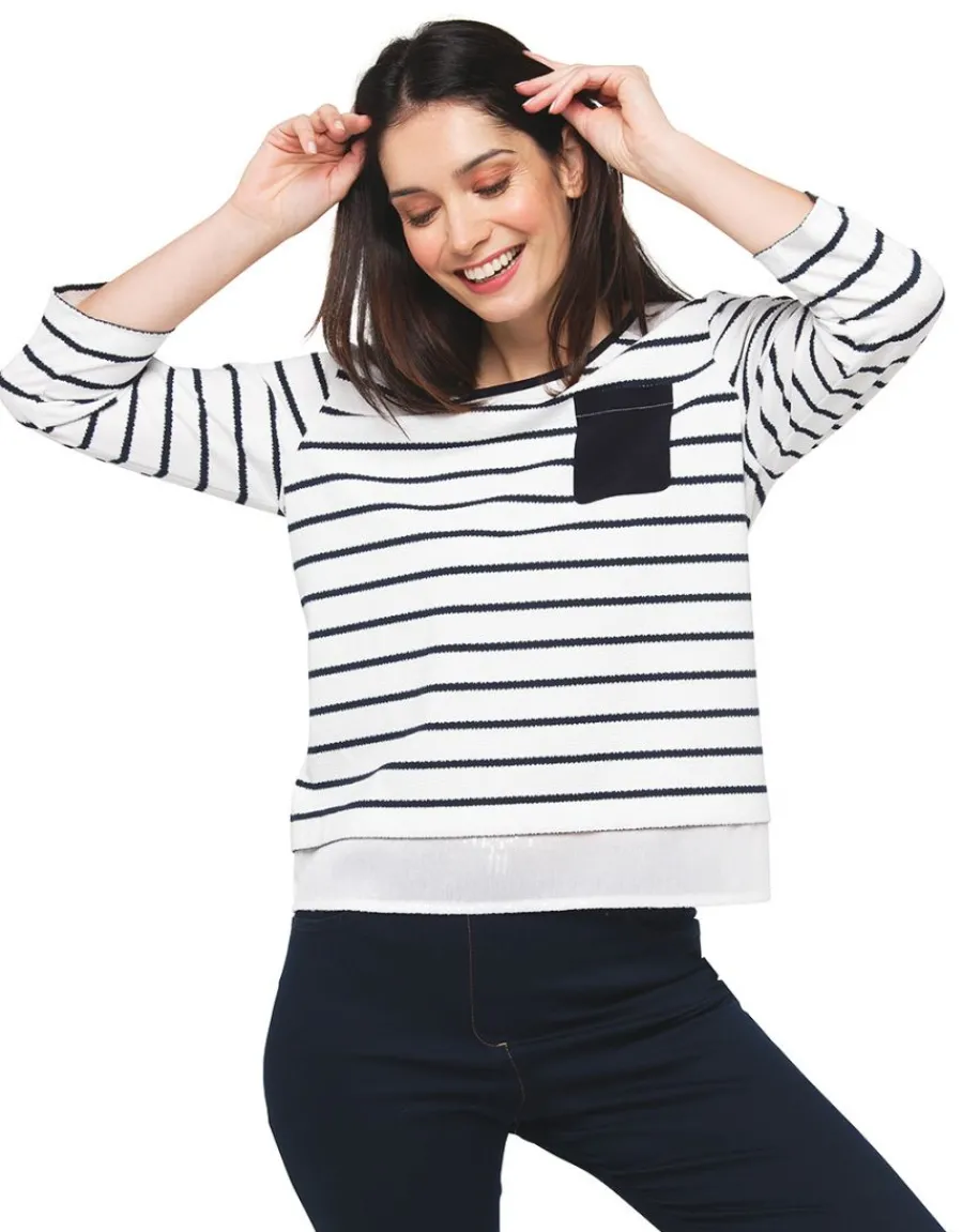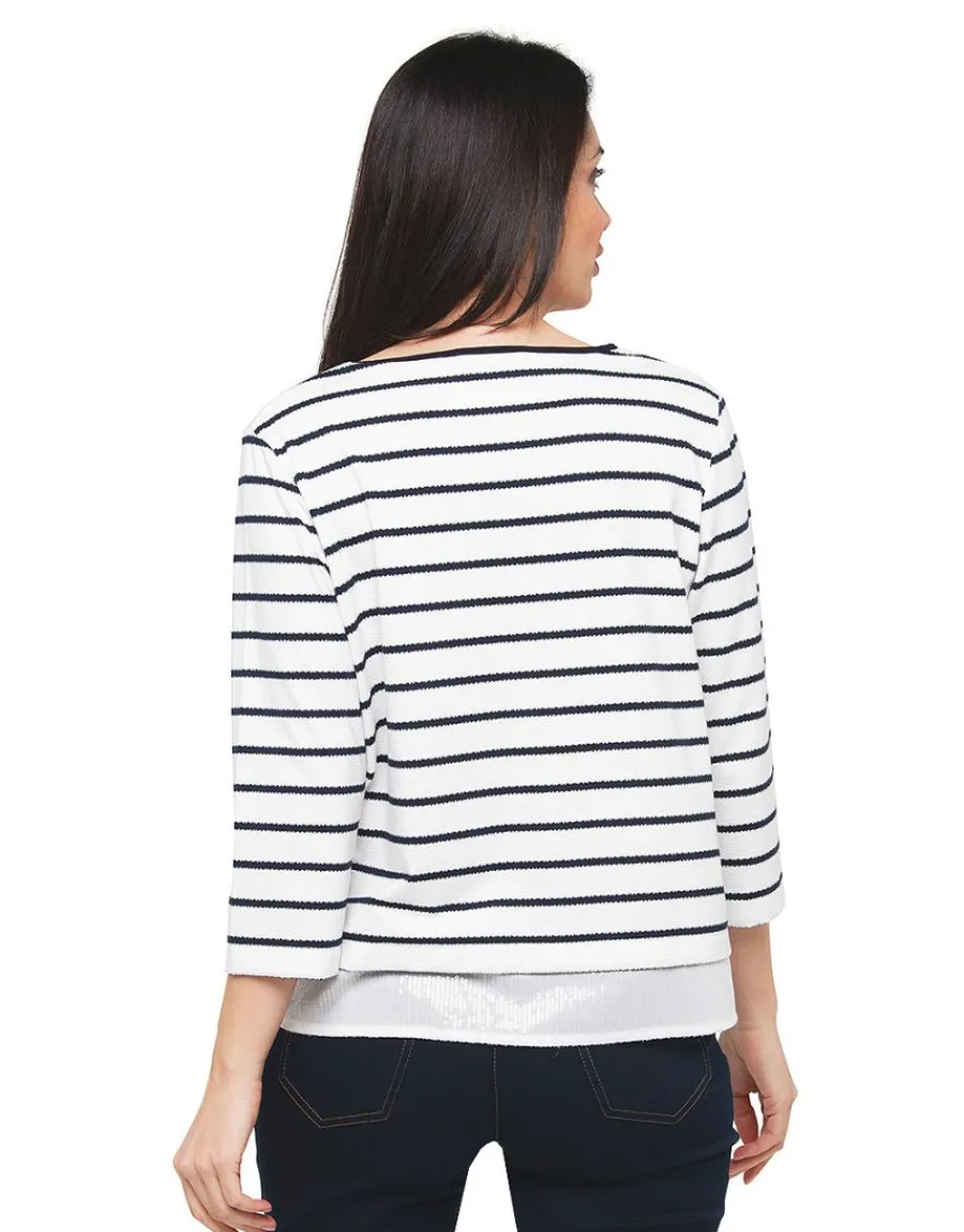 – Inspiré par l’esprit intemporel de la mode marine, ce top prend une nouvelle dimension avec des détails subtilement irisés.