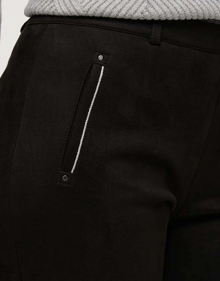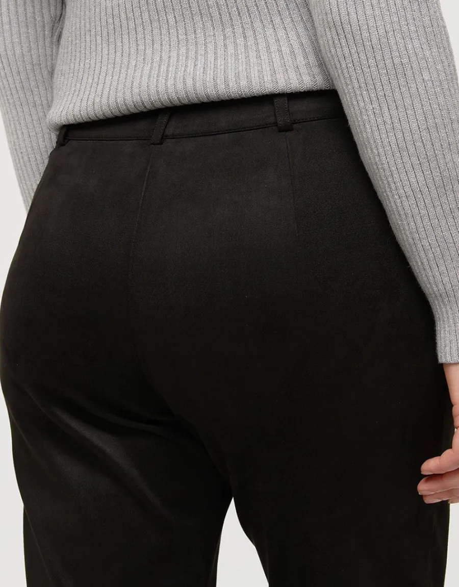 – On aime la profondeur du noir de ce pantalon en suédine et sa coupe impeccable pour des looks parfaits.