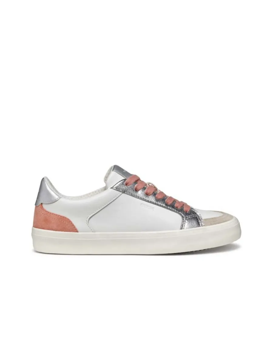 – Baskets basses légères cuir blanc et argenté Geox modèle Emmeleny