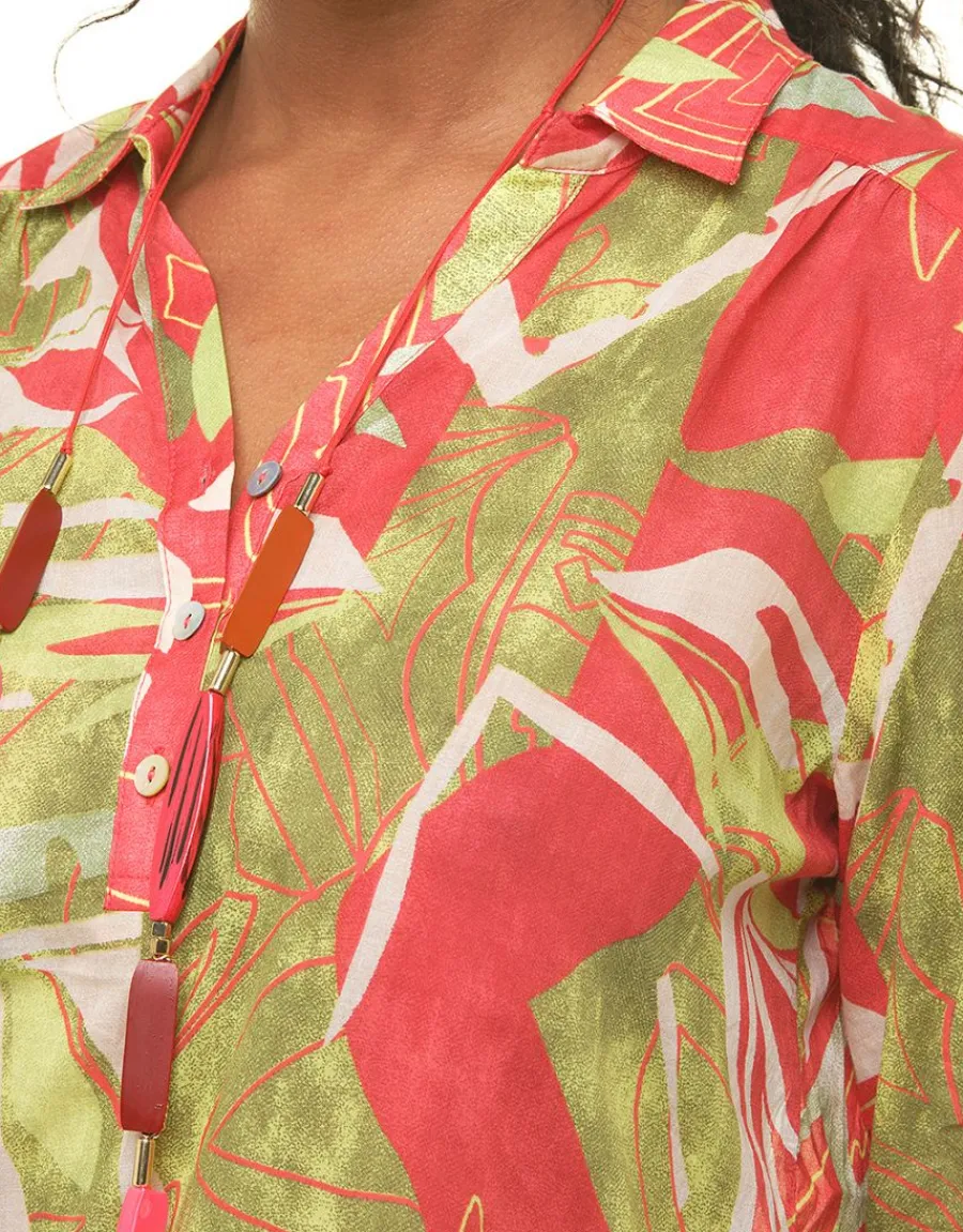– Un imprimé tendance fort vert anis et rouge orangé