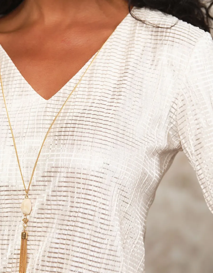 – Blouse écru à bijoux amovible