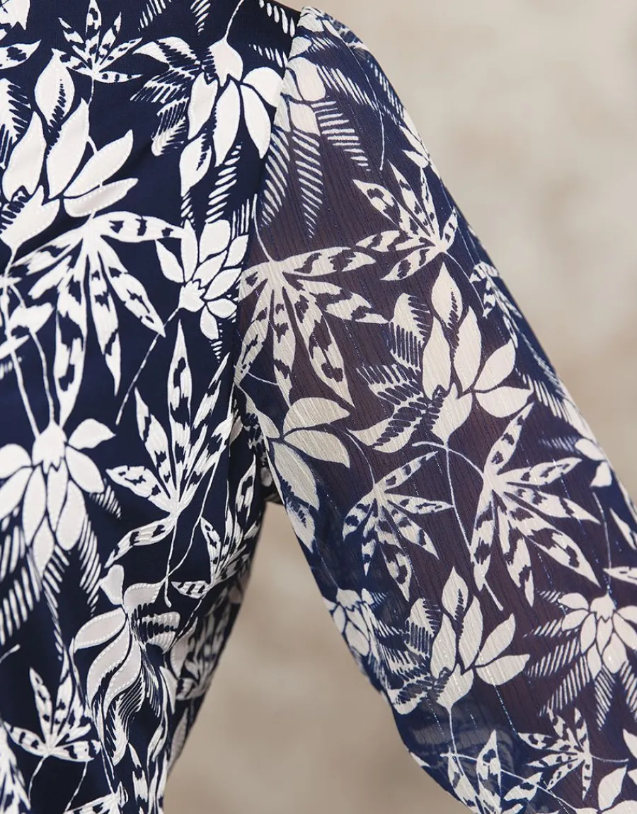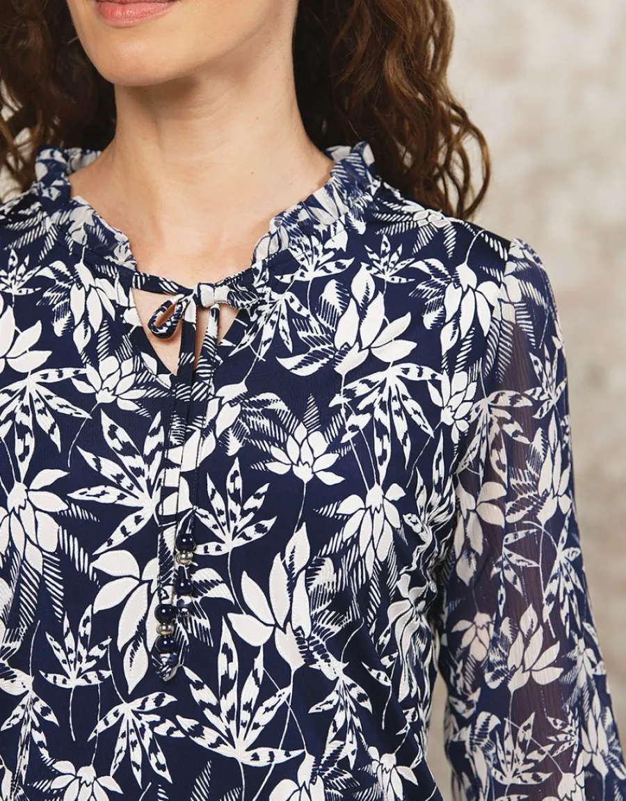 – Blouse bleue à imprimé fleuri blanc