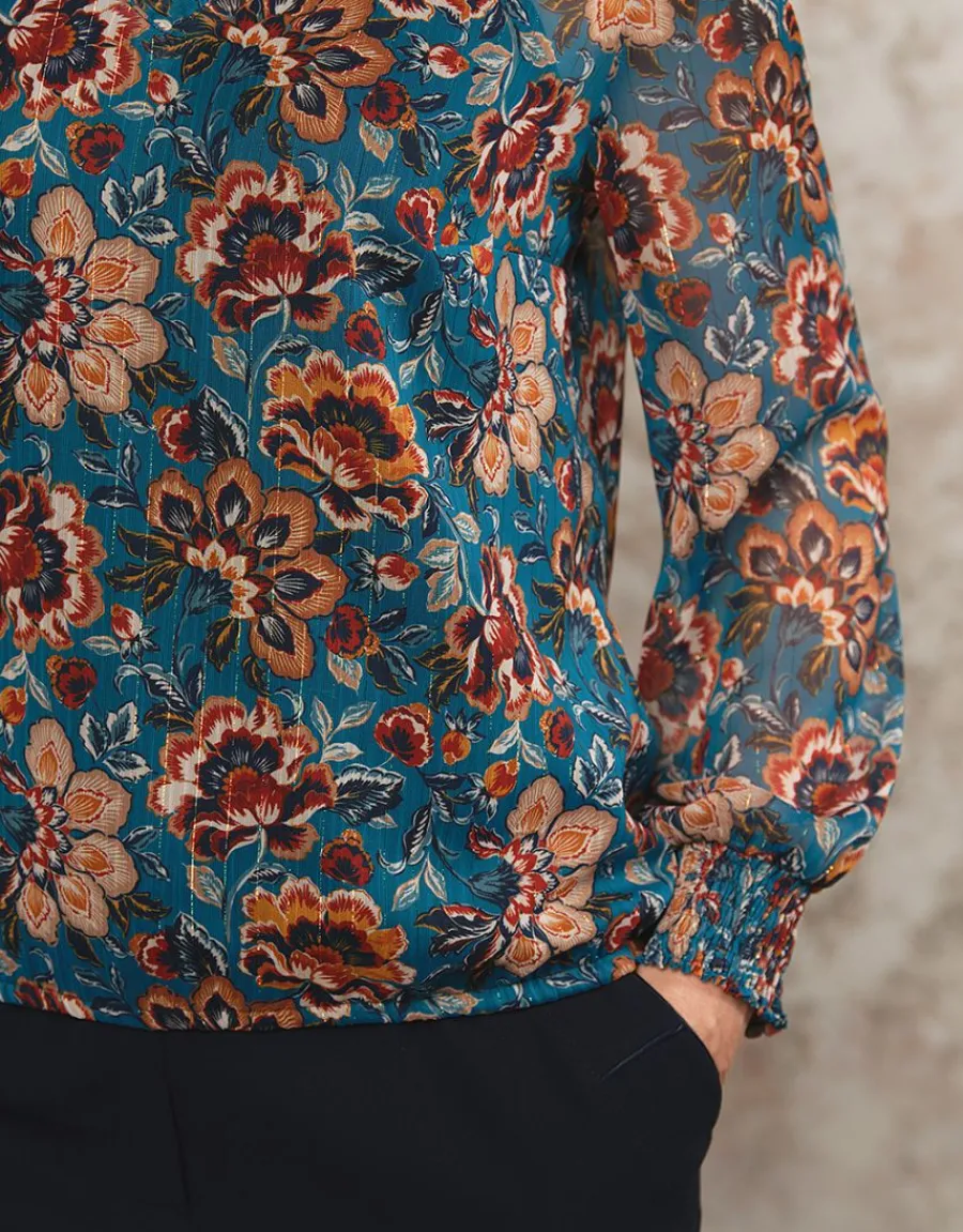 – Blouse bleue à motifs
