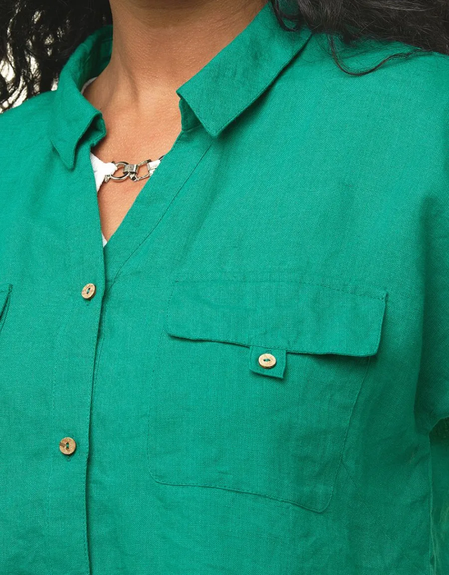 – Encolure en col V avec deux petites poches boutonnées poitrine