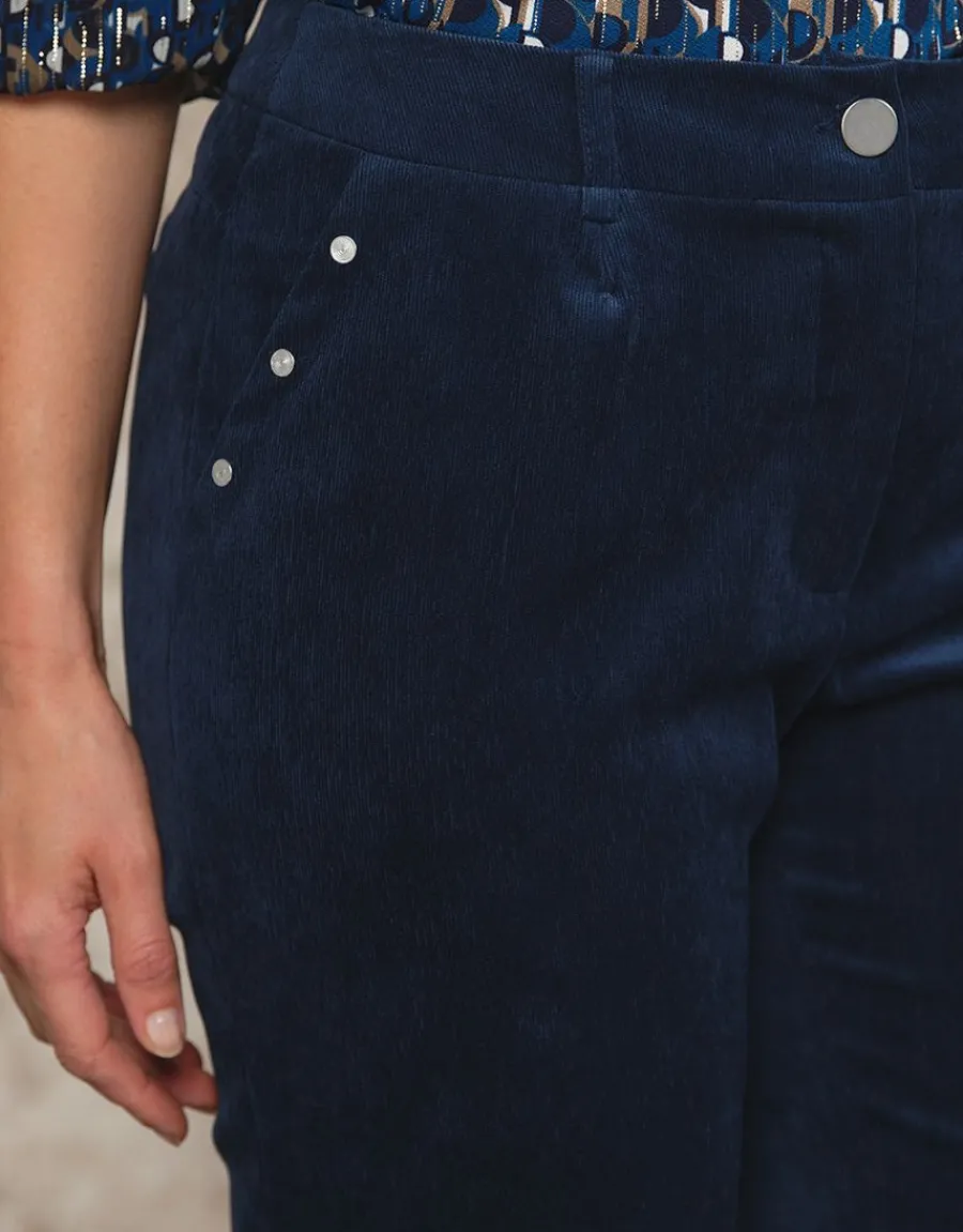 – Pantalon en fin velours côtelé bleu nuit