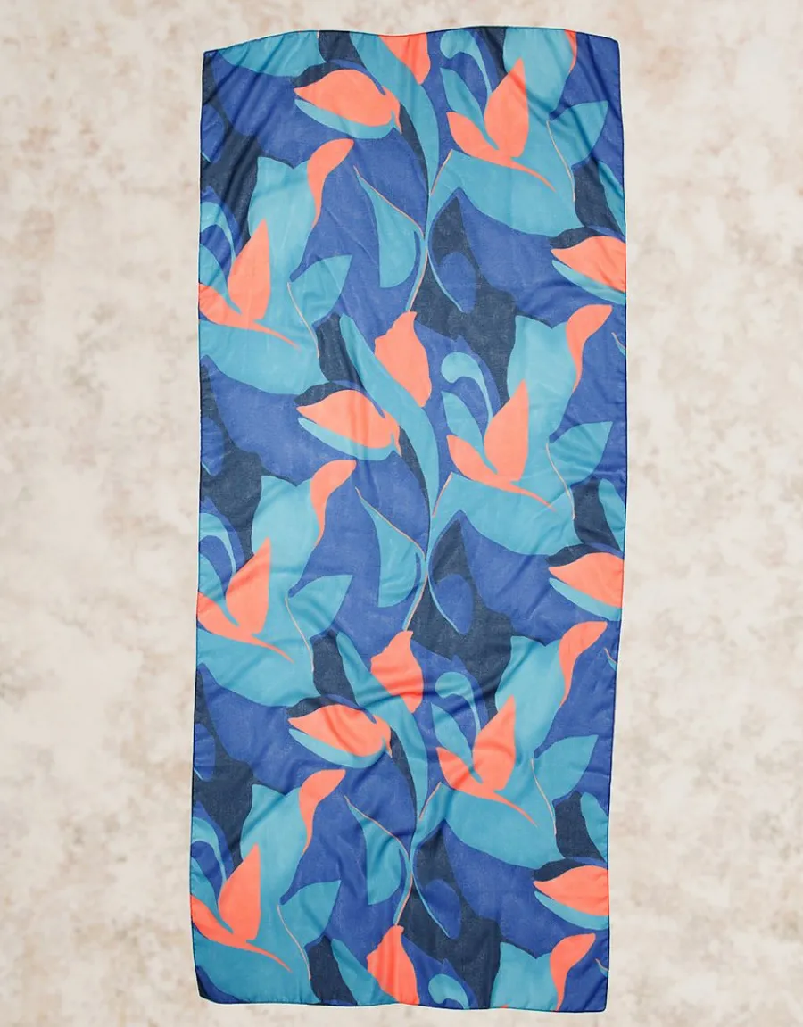 – Foulard bleu, turquoise et orange imprimé