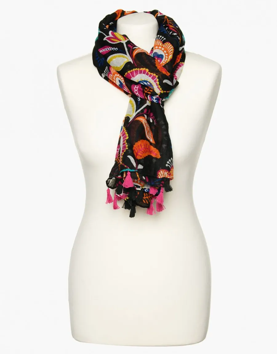 – Foulard noir imprimé floral rouge et ocre