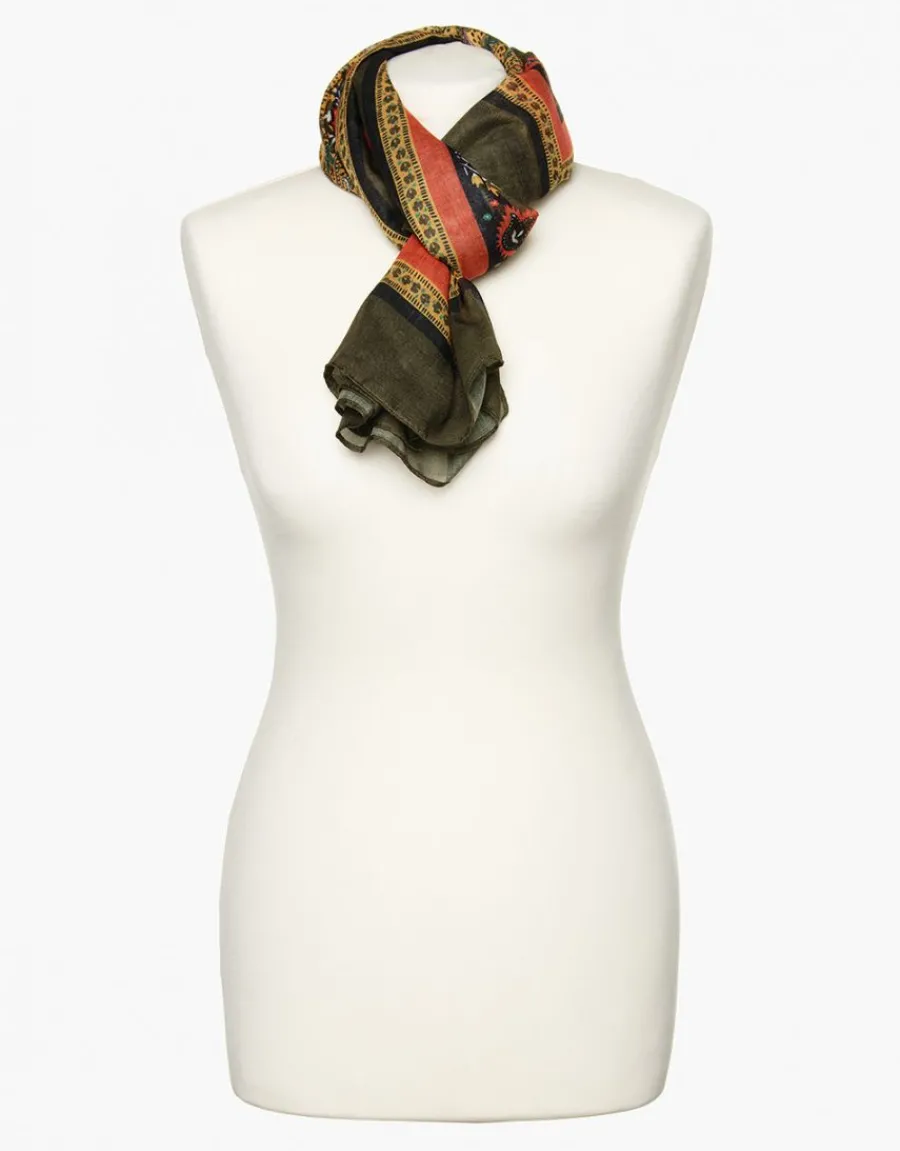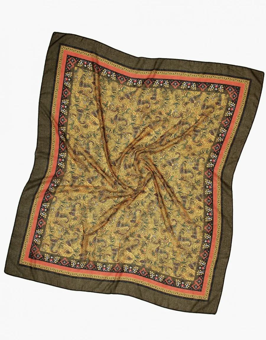 – Foulard ocre et vert kaki imprimé