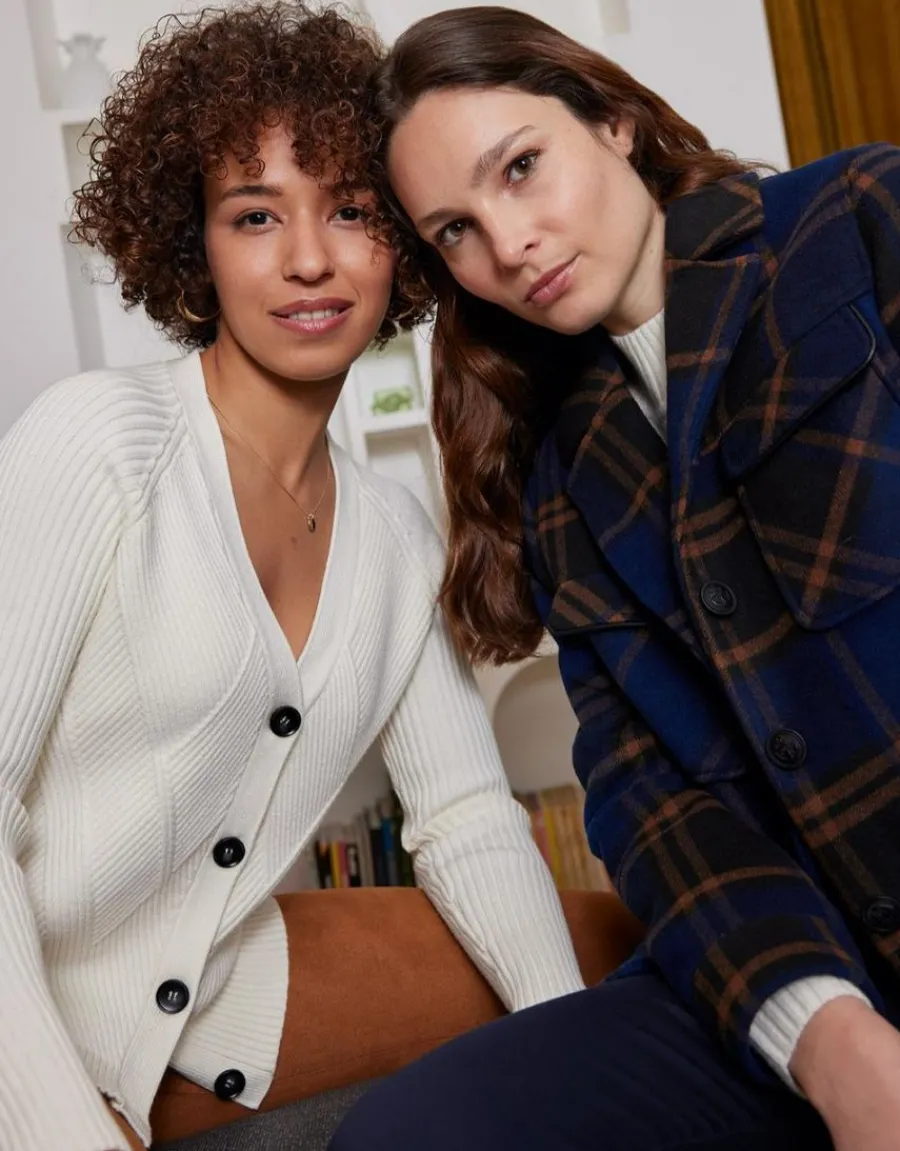 Découvrez le gilet écru graphique en maille fantaisie, boutonné et à la coupe droite. Doté d’une encolure en V et de manches longues raglan en grosses côtes, ce gilet apporte une touche d’élégance à votre tenue. Sa couleur écru est intemporelle et facile à assortir. Les détails mode se trouvent dans le jeu des côtes croisées sur l’avant, ajoutant une touche d’originalité au vêtement. La maille fantaisie élaborée crée un effet graphique et dynamique, parfait pour apporter du style à votre look. Mesurant 1,76m, Emma porte du 38 et met en valeur ce gilet avec sa ligne sobre mais travaillée. En tant que pièce incontournable de l’hiver, ce gilet en maille souple est un indispensable dans votre garde-robe. Son design unique avec des mailles tricotées en diagonale crée un mouvement visuel très graphique, apportant une touche moderne à votre tenue. Vous pouvez le porter avec notre pantalon écossais (E0685) pour un look sophistiqué ou avec notre jean fleuri (E07180) pour un style plus fun et décontracté. La composition de ce gilet est de 48% viscose, 27% polyester et 25% polyamide, assurant confort et qualité. Sa longueur de 60 cm du haut de l’épaule jusqu’en bas pour la première taille convient à différentes morphologies. Optez pour ce gilet écru graphique pour ajouter une touche de style à vos tenues au quotidien.