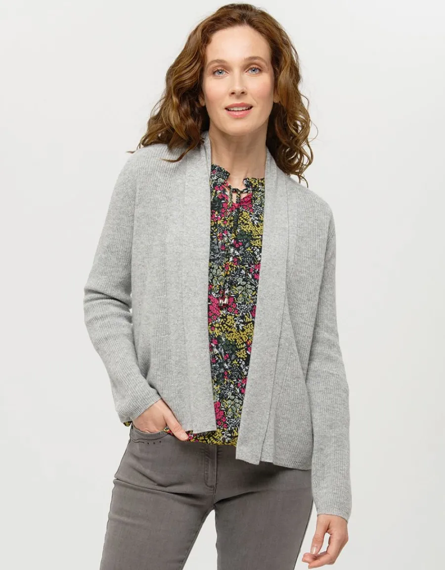 – Gilet gris chiné en maille à long col châle