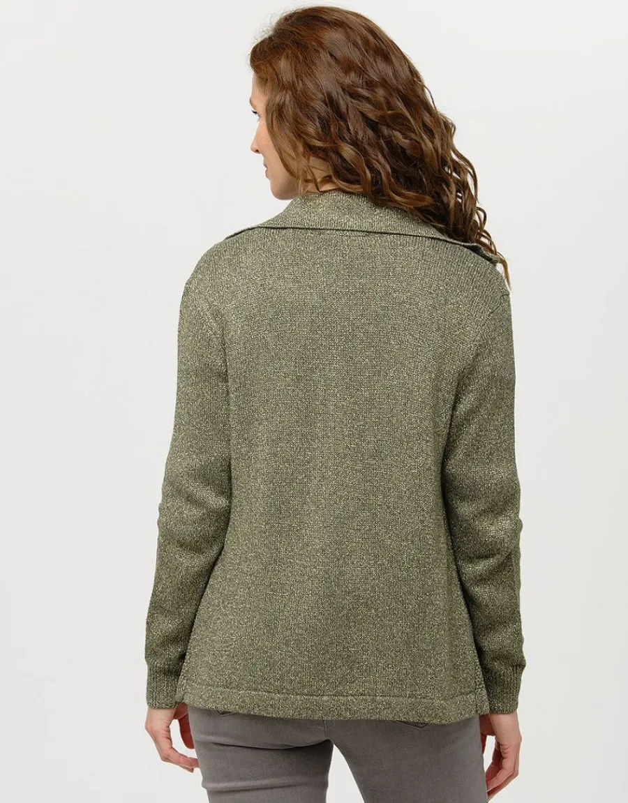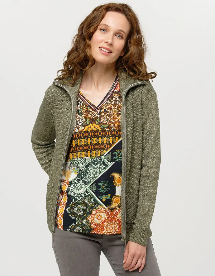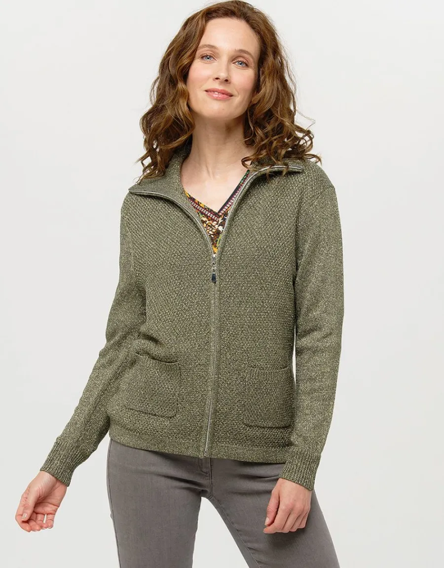 – Gilet zippé kaki en maille irisée à col ouvert